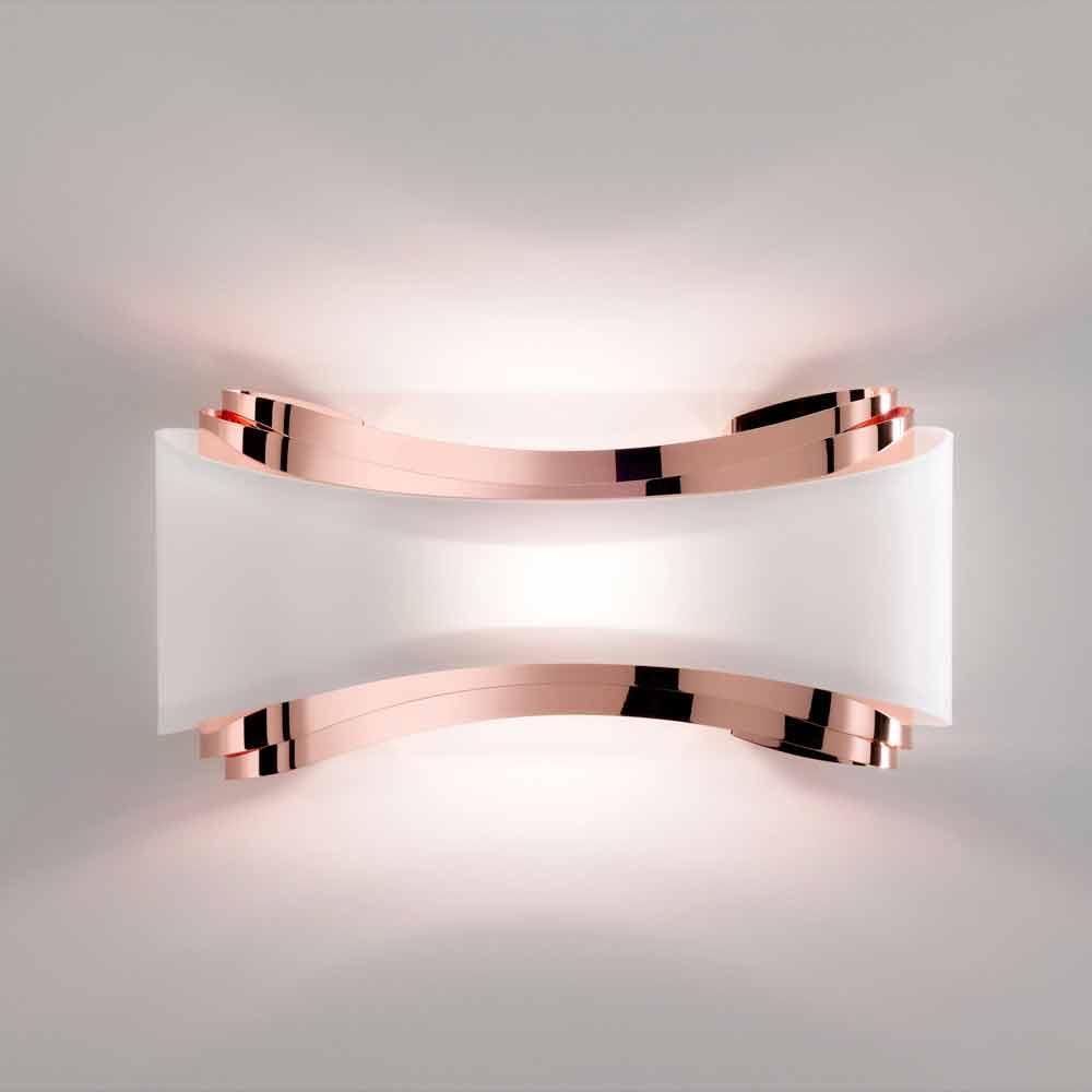 Selene jónica acero applique y hecho a mano de vidrio 43x12 H 20cm Ionic es una lámpara formada por bandas D 'hábilmente a mano de acero doblada con el fin de crear una forma fluida y compuesto. Acabado: cobre. Lit por bombillas normales o LED. NB bombillas no están incluidos.