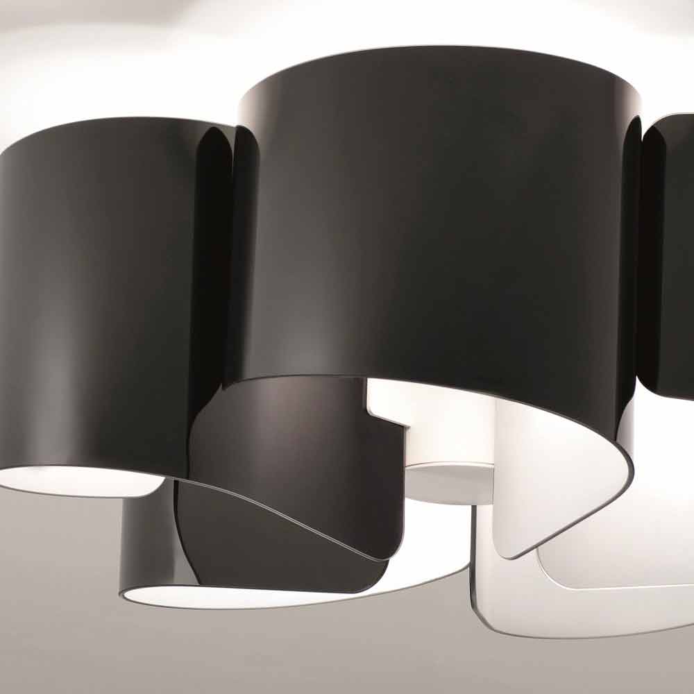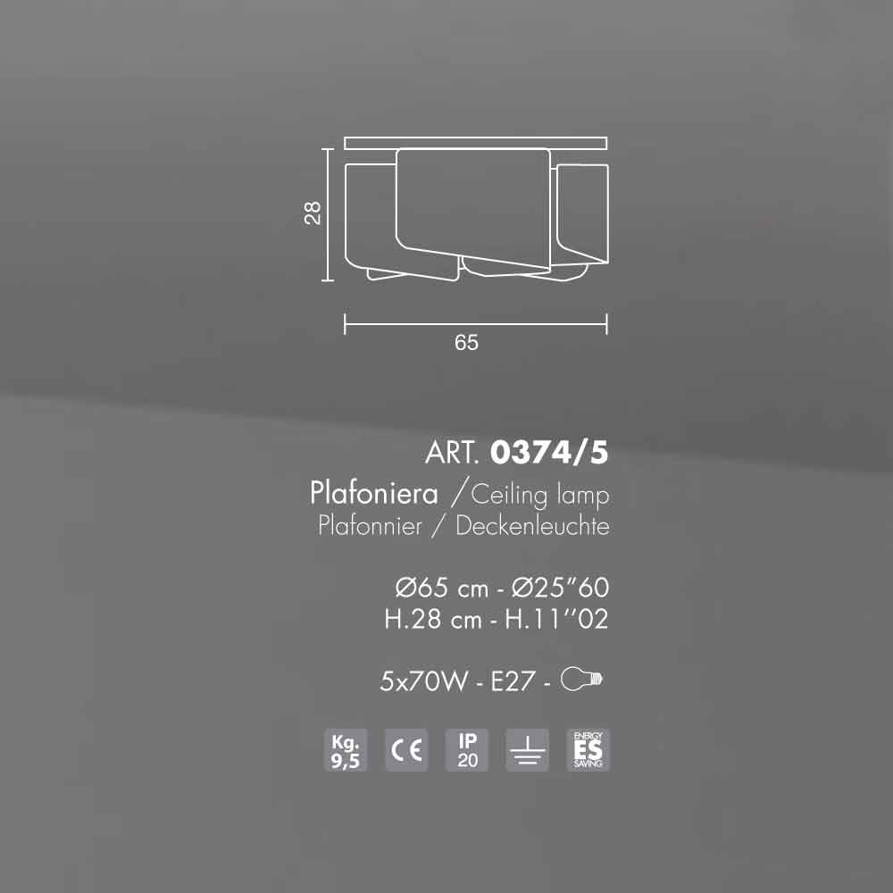 es una increíble colección rica y versátil, que reúne todos los tipos de lámparas divididos en varias variaciones de forma, tamaño y número de fuentes de luz. El difusor, con una forma particular, es de vidrio extra claro y está disponible en varios acabados. Preparado para el 'uso de E 27 5 bombillas 70W (no incluido).
