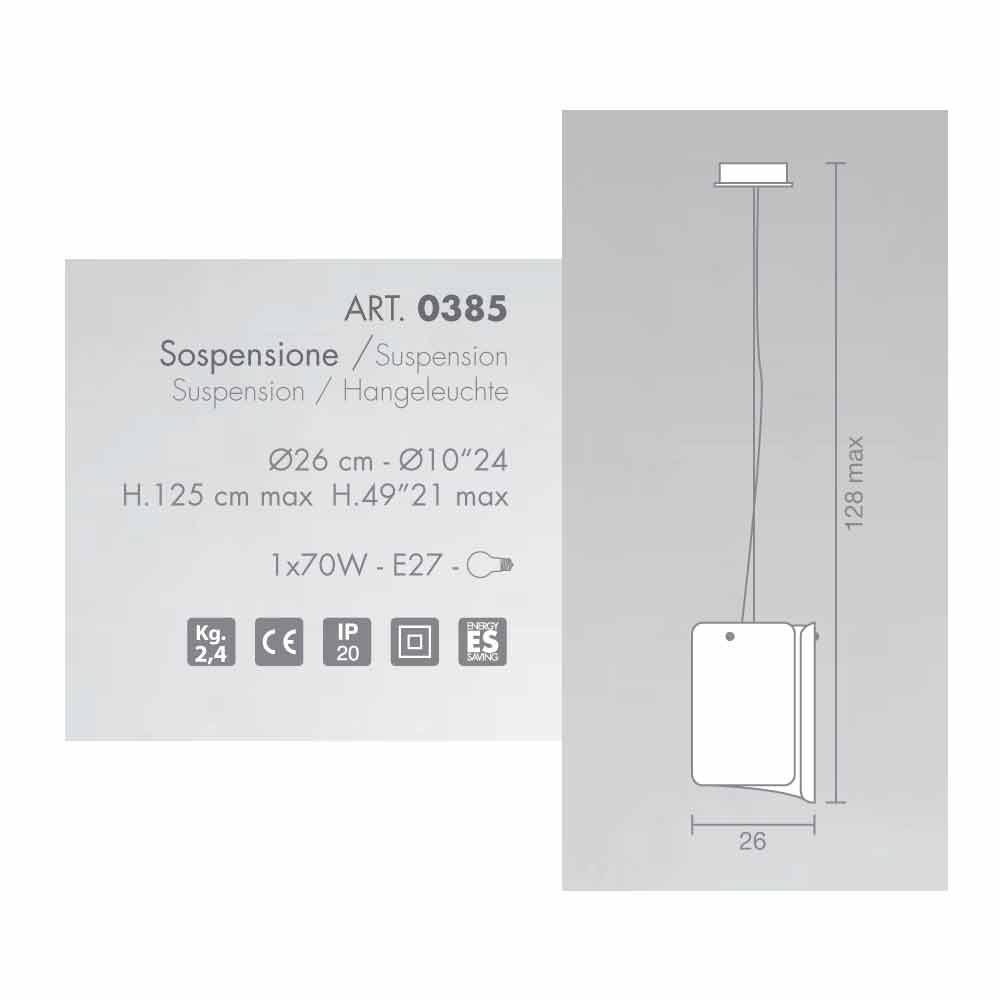 Selene Papiro moderna lámpara colgante de cristal Ø26 H 125cm El papiro es una increíble colección rica y versátil, que reúne todos los tipos de lámparas divididos en varias variaciones de forma, tamaño y número de fuentes de luz. El difusor, con una forma particular; vidrio extra claro y está disponible en varios acabados. Preparado para el 'uso de 1 E 27 70W bombilla (no incluido).