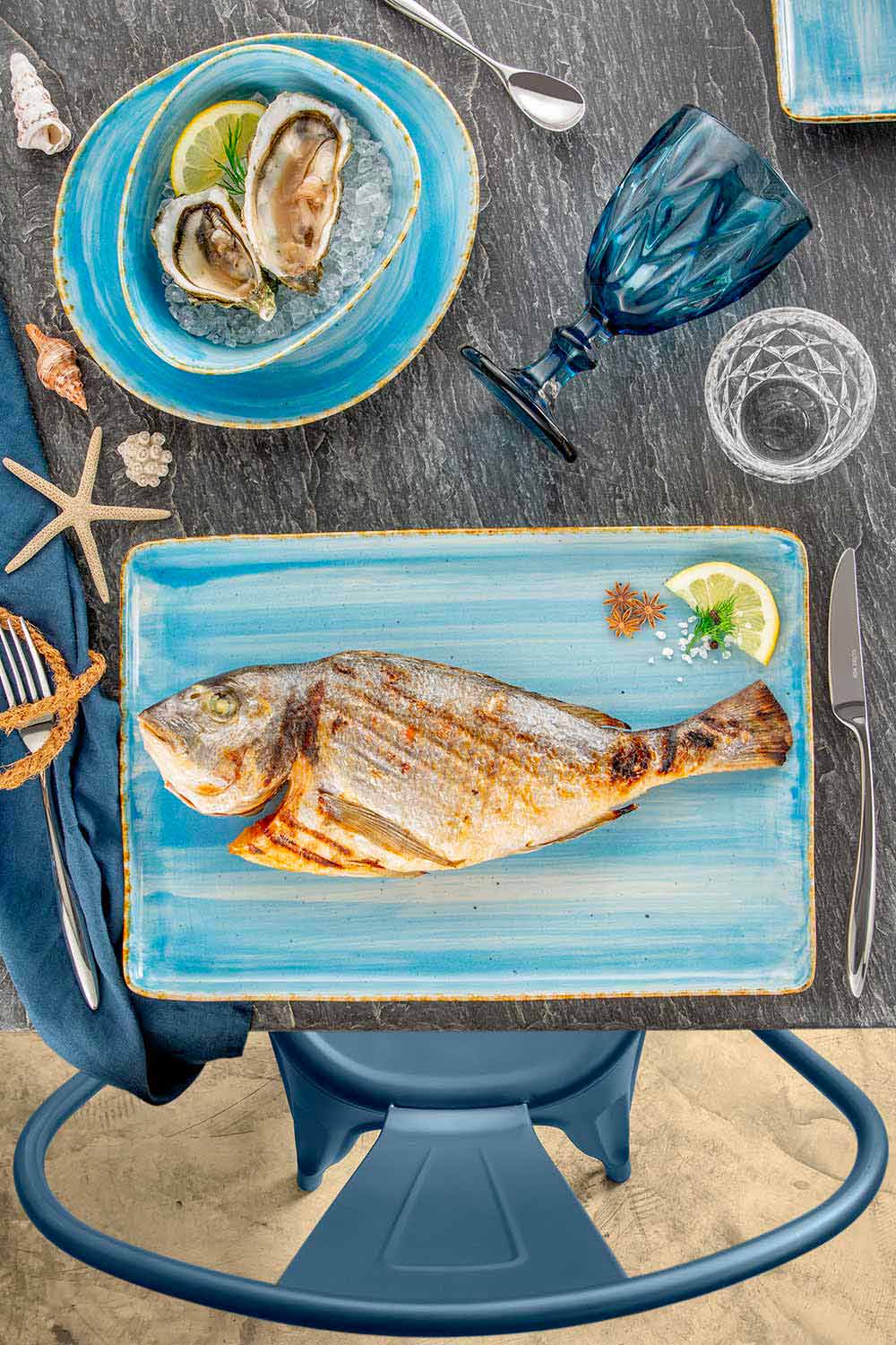 azul anís : el color del océano y la brisa marina que se combina con la inmensidad del cielo, para una puesta en marcha que quiere sorprender y resaltar ideas sabrosas en la cocina.