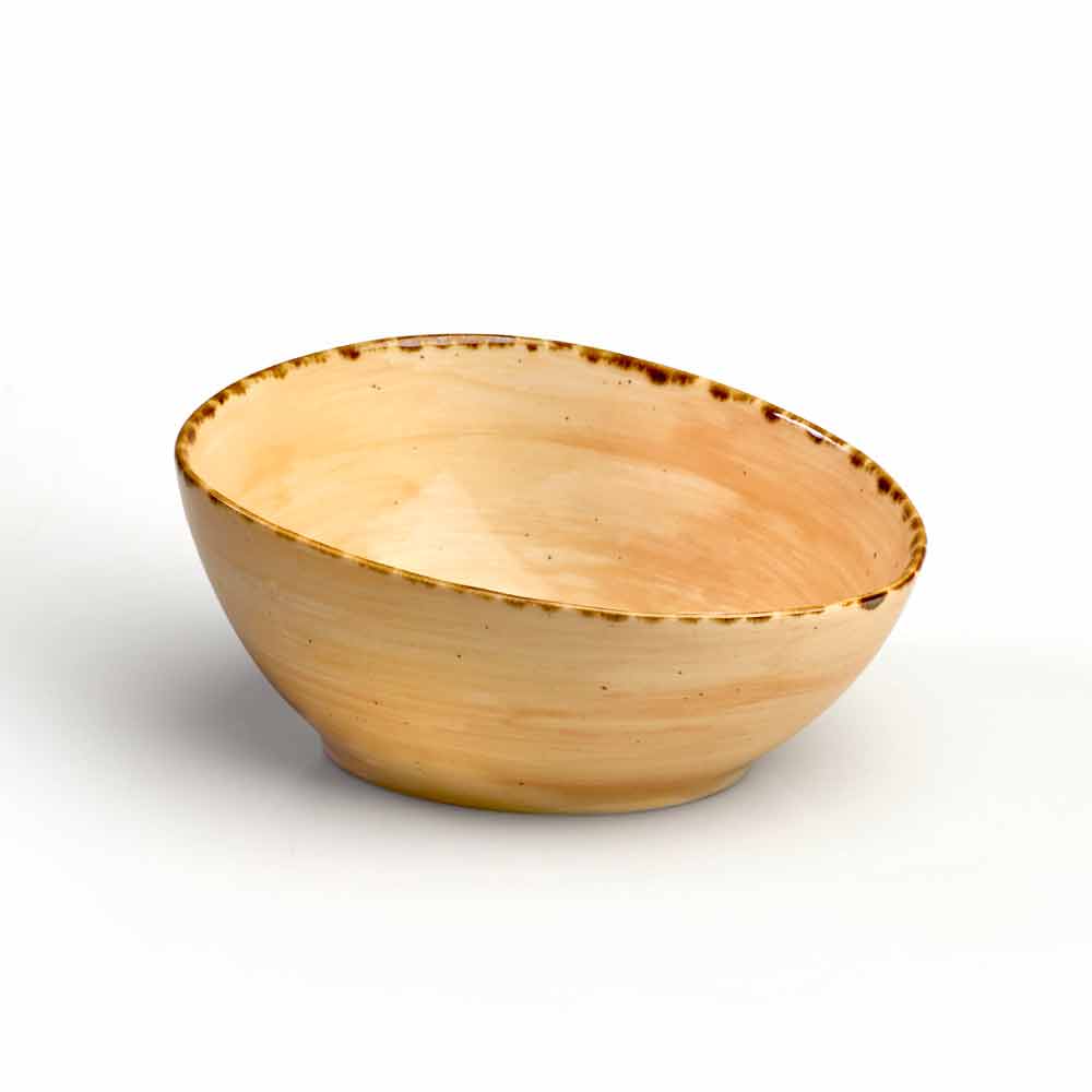 Originalidad : las formas irregulares, las decoraciones con pinceladas imprecisas y con un efecto moteado acabado y pintado a mano y el borde envejecido, resaltan el estilorústico y terroso de la colección. Cada diferencia entre una pieza y otra debe considerarse como una característica adicional de valor y personalidad, que hace que cada pieza sea única.