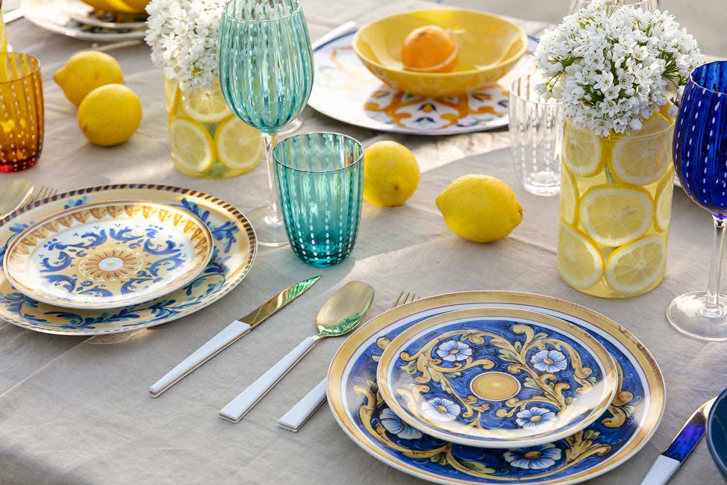 Inspirado en su mayólica tradicional, el conjunto trae a la mesa