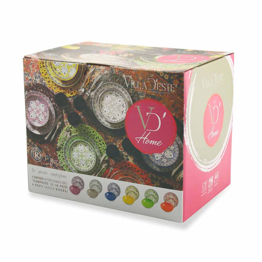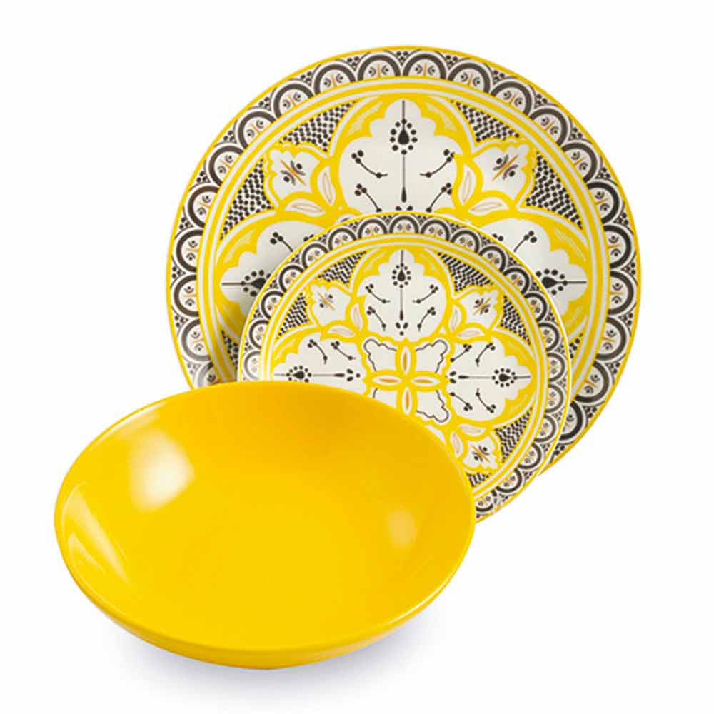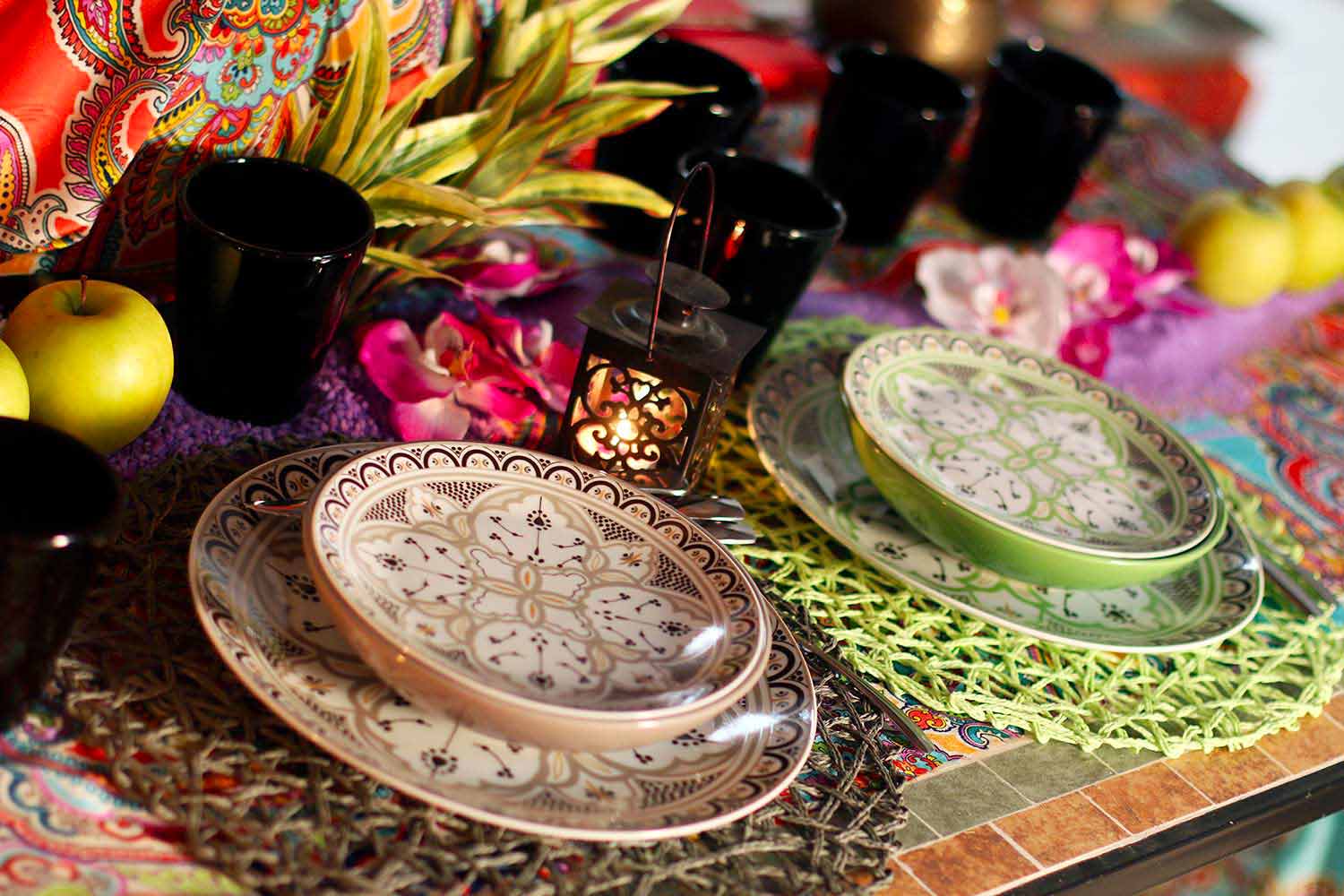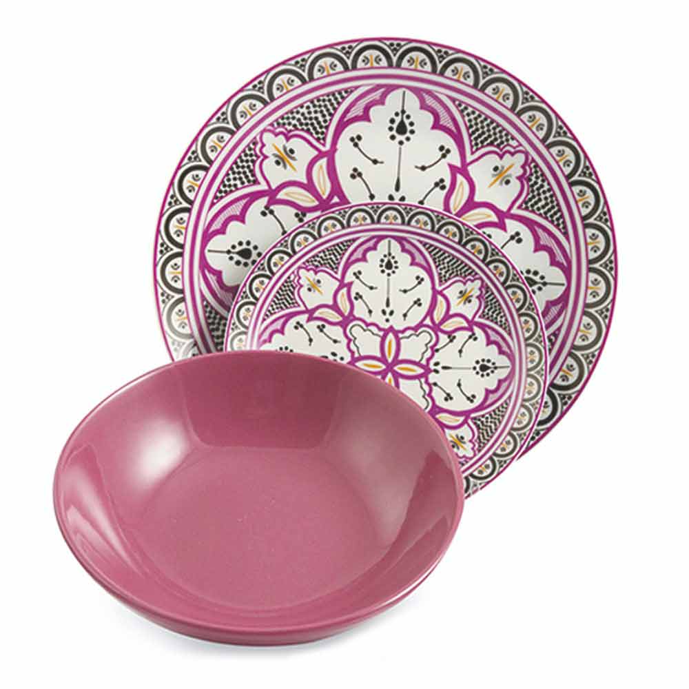 Servicio de platos étnicos en porcelana y gres coloreado y moderno 18 piezas - Fez
