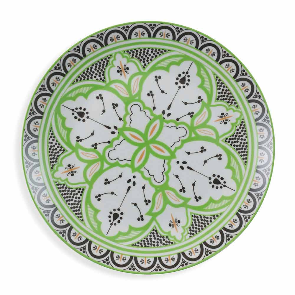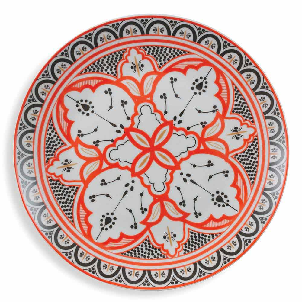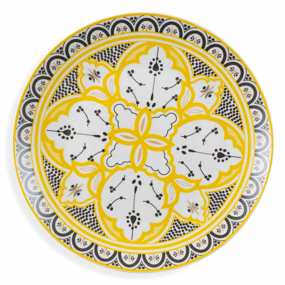 Este servicio nos acompaña a descubrir las decoraciones étnicas en Marruecos . En el centro de cada plato está, de hecho, el arabesco grande y geométrico utilizado en lugar de la flora y la fauna cuya representación estaba prohibida por las leyes sagradas del lugar.