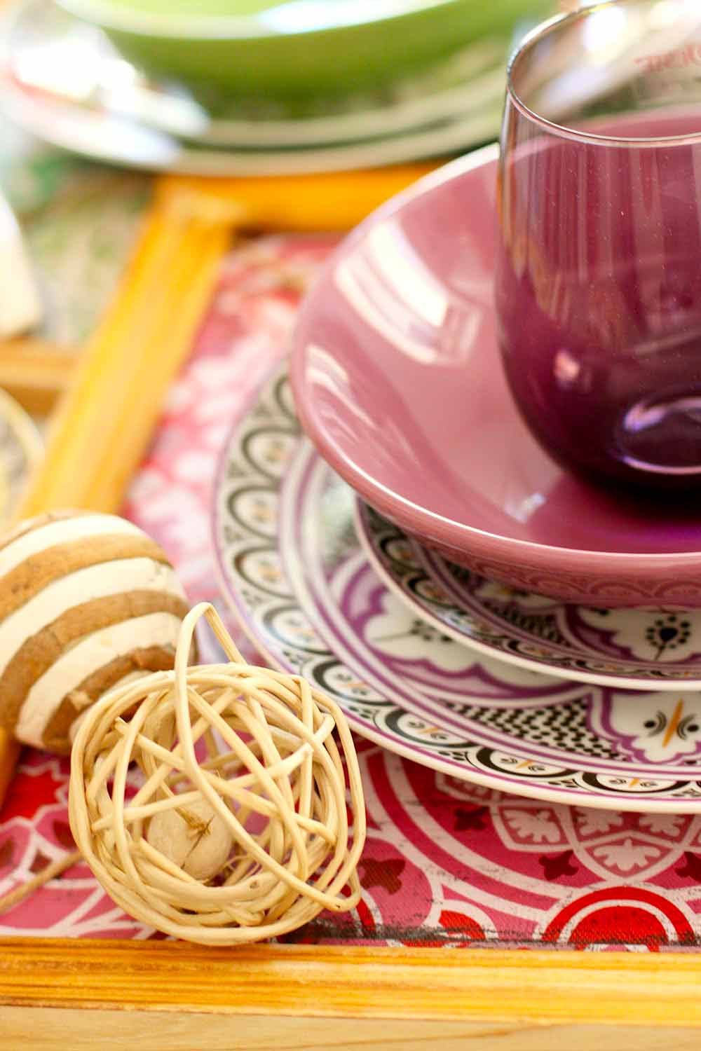 Servicio de platos étnicos en porcelana y gres de colores y modernos de 18 piezas.