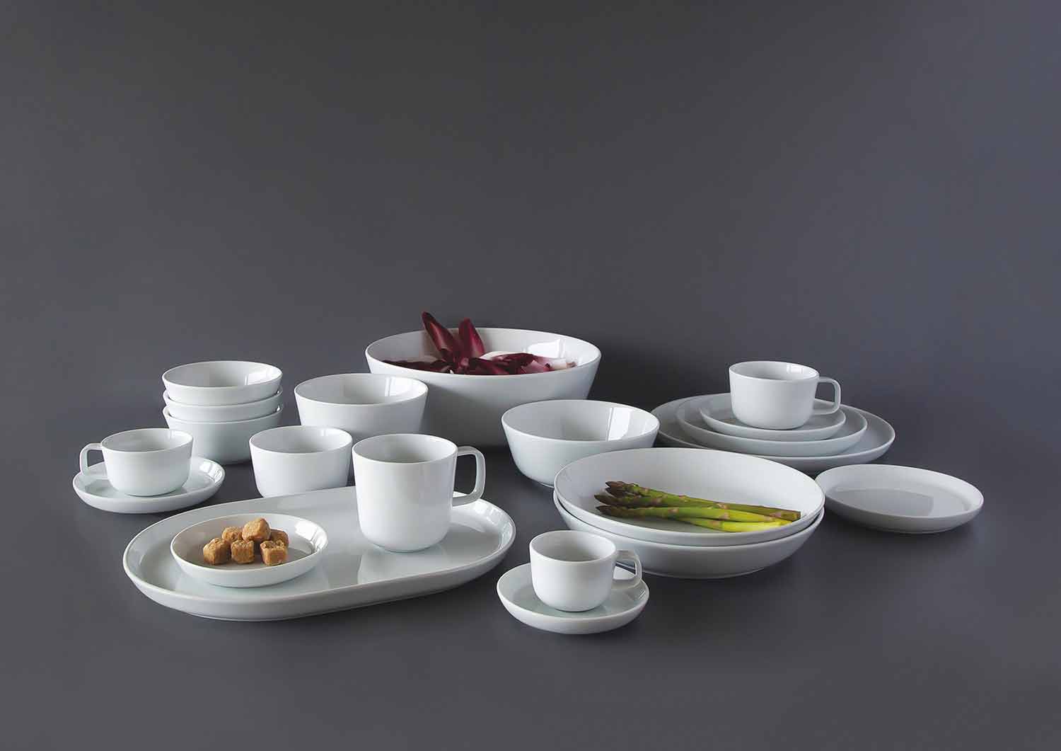 La inspiración para este juego de tazas de té proviene de la simplicidad moderna del diseño y el paisaje escandinavos . La forma es una síntesis perfecta y equilibrada entre una placa de coupé y una tradicional con borde: de hecho, tiene un centro espacioso con unbordeestrecho y empinado. De esta manera se combinan la elegancia estética y la funcionalidad para brindar una mayor área dedicada a la presentación de los alimentos y un manejo práctico del plato.