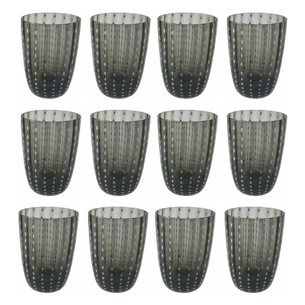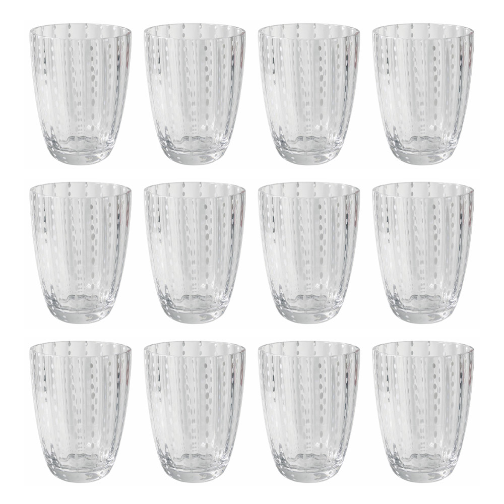 Vasos para agua en vidrio coloreado con adornos blancos 12 piezas.