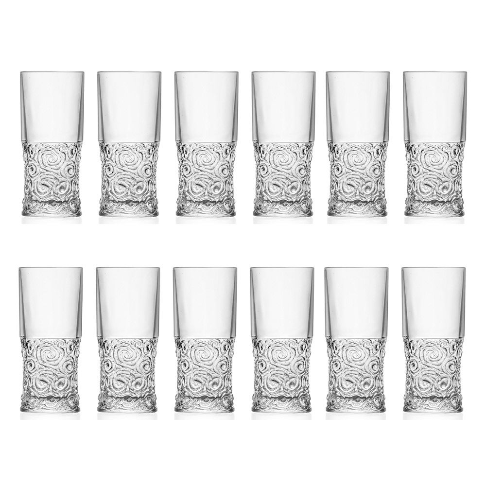 Vasos highball en eco cristal con decoración redonda 12 piezas fabricados en Italia.
