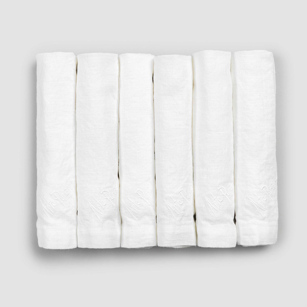 El valor de la tradición se combina con el estilo de vida moderno en este servicio de 6 servilletas de lino blanco pesado con borde plegable.