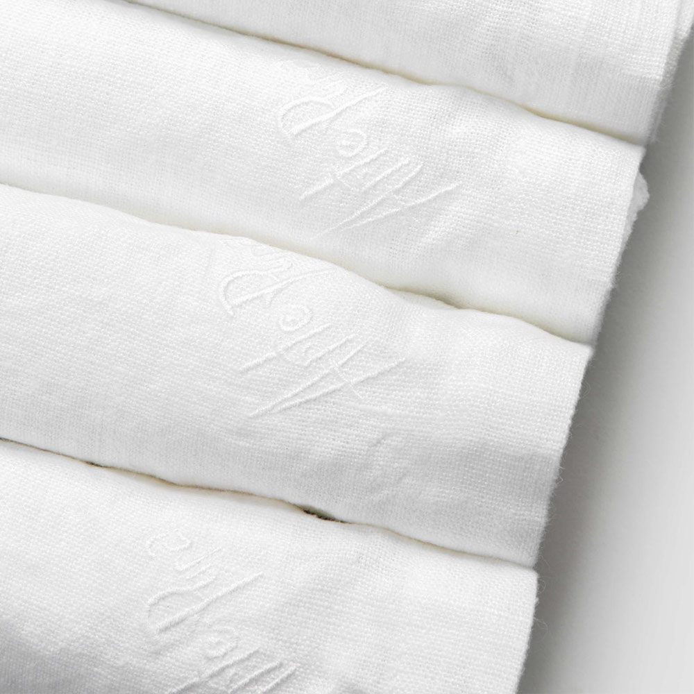 6 servilletas blancas de lino grueso con borde plegable, diseño lujoso y elegante made in Italy.