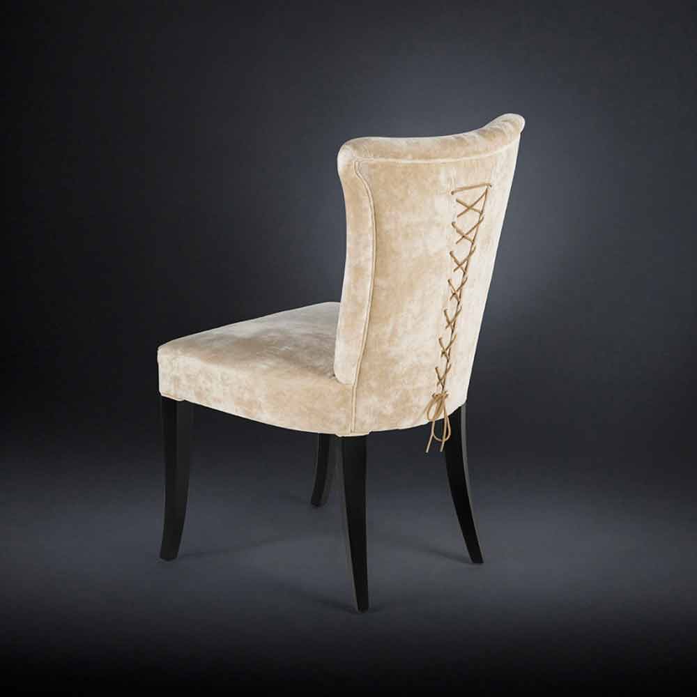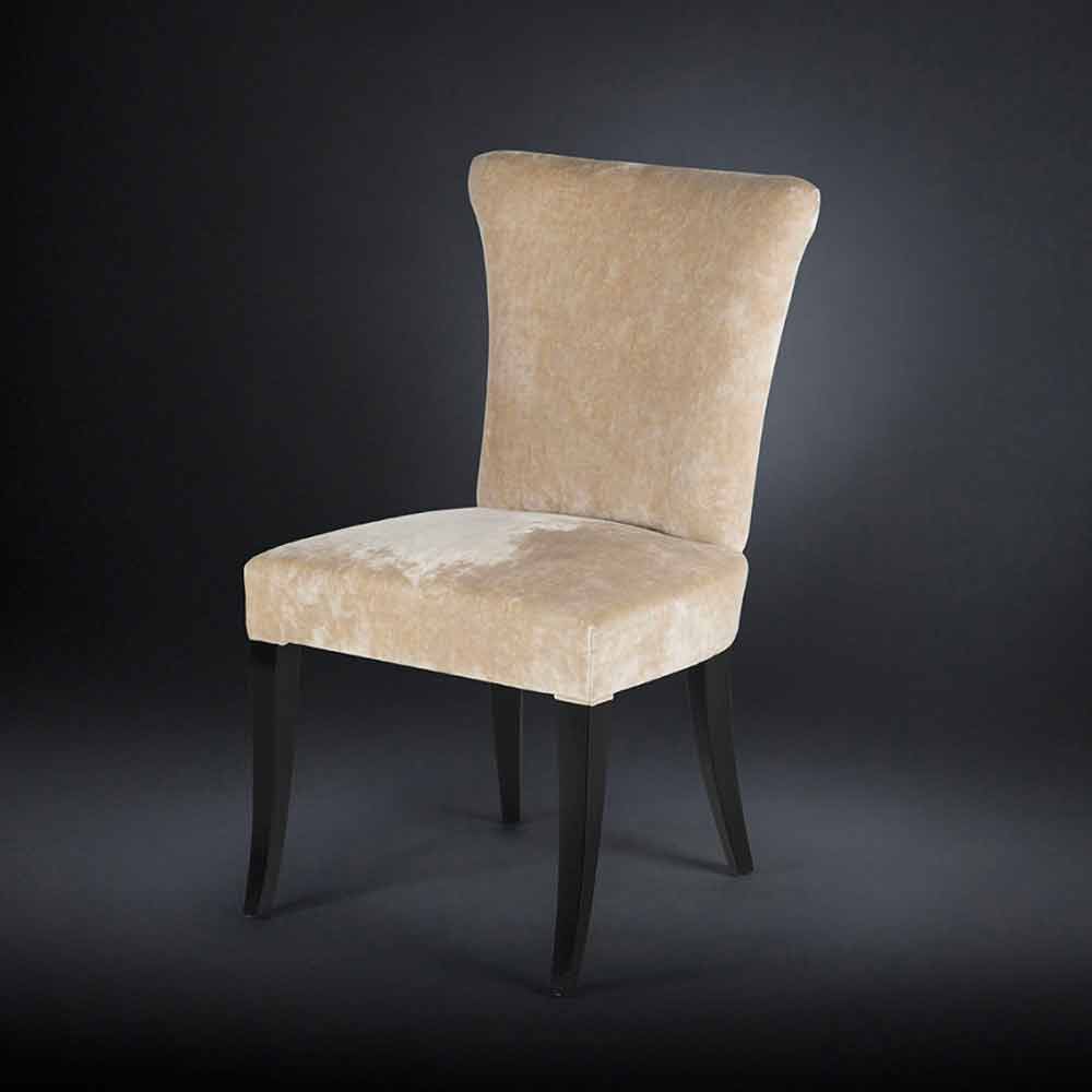 Dita es una extraordinaria silla de diseño sencillo y original, de estilo belle époque, adaptable a todo tipo de mobiliario, del más clásico al más moderno. Estas sillas se componen de una estructura de madera negra opaca, de un acolchado con poliuretano de alta densidad y de un asiento tapizado con correas elásticas.