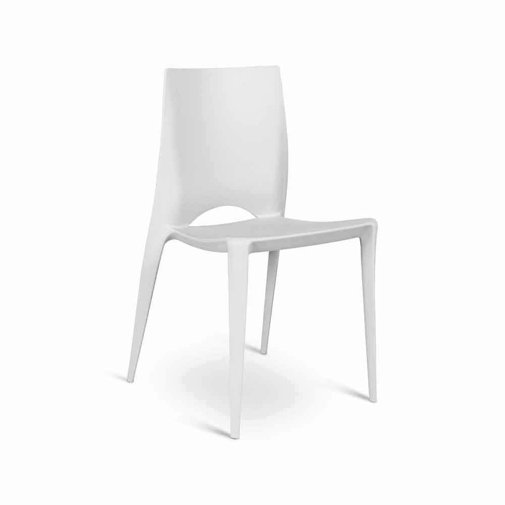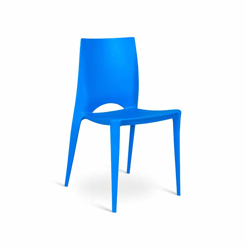 Sillas apilables fabricadas en polipropileno. Disponible en los siguientes colores: blanco, azul, gris, negro, verde.