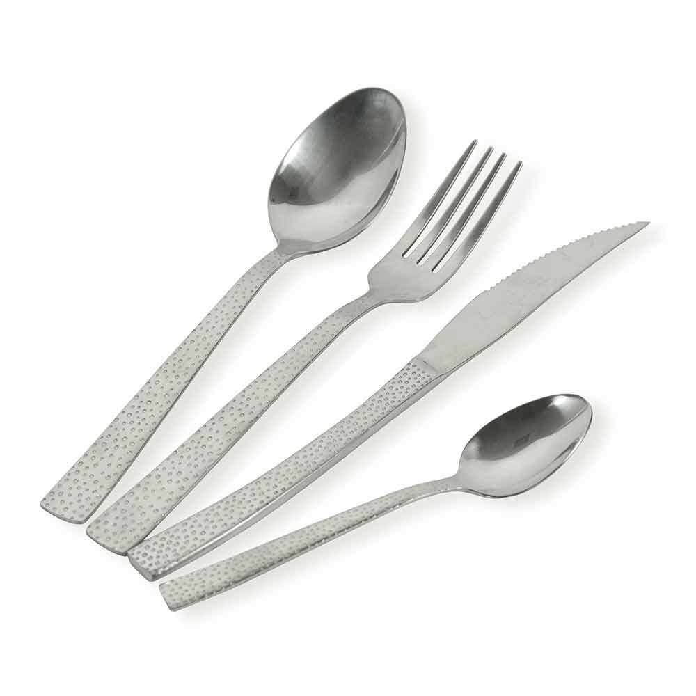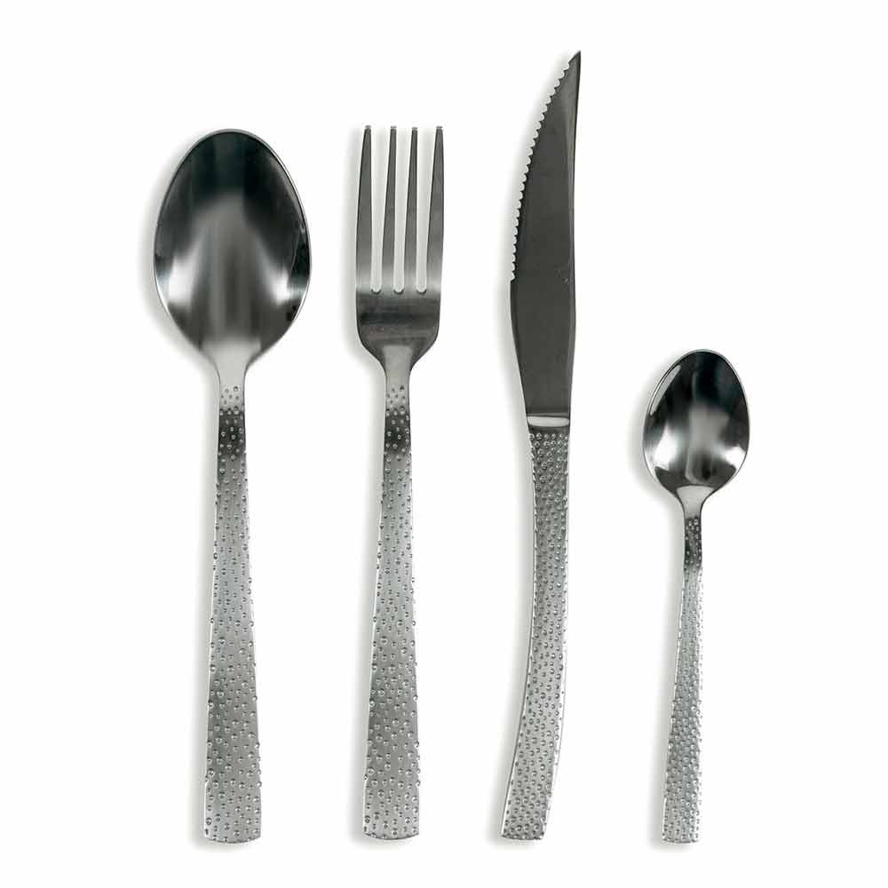 | Medidas | Tenedor: l. 2.5 x p. 2 x h. Cuchara de 20 cm: l. 4.2 x p. 2,5 x h. Cuchillo de 20 cm: l. 2 x p. 0.5 x h. 21 cm cucharadita: l. 3 x p. 1 x h. 14,3 cm |