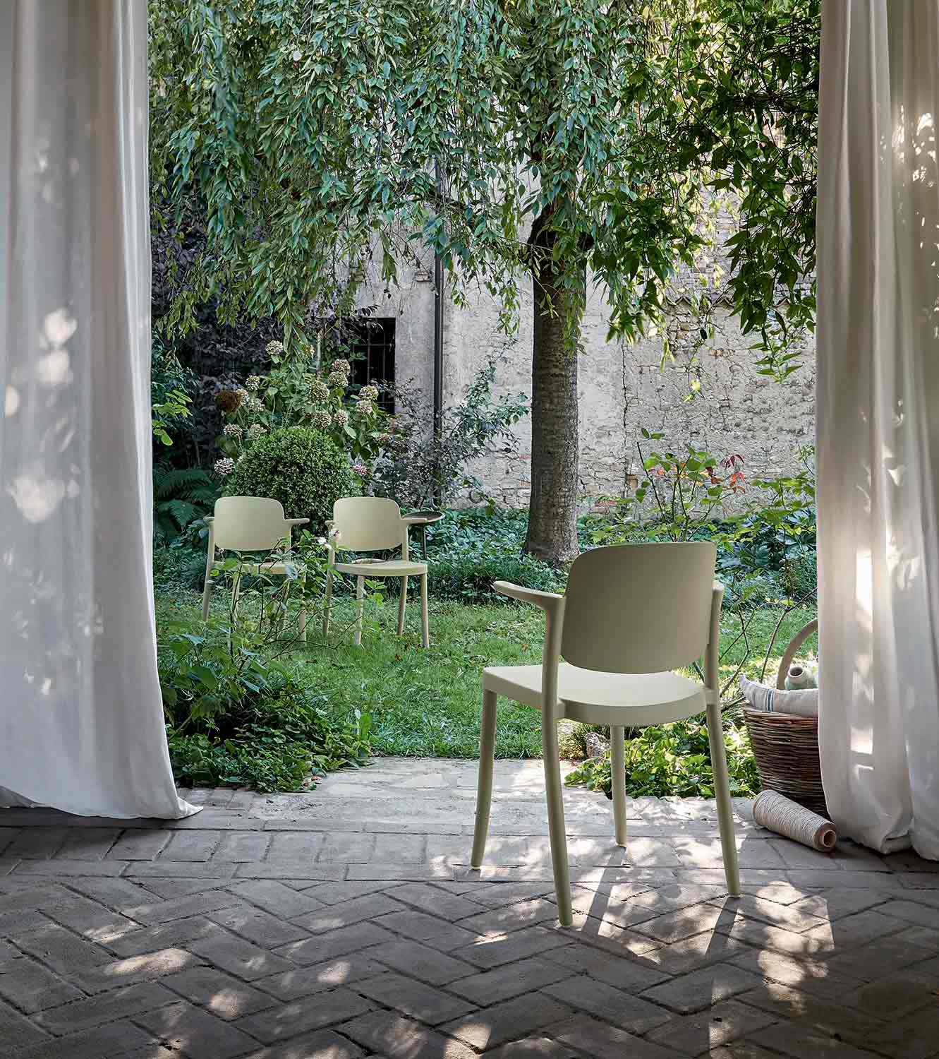 La silla para exteriores Bertina se caracteriza por un diseño que logra combinar perfectamente la tradición que encontramos en la forma con la modernidad del polipropileno que la hace resistente a todas las condiciones climáticas.