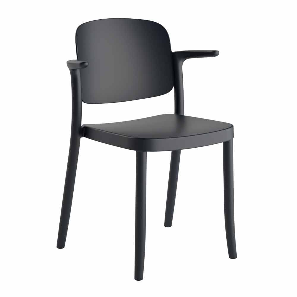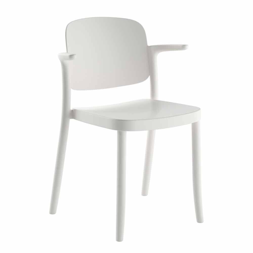 Silla apilables para exteriores de polipropileno de diseño con reposabrazos, 4 piezas, hecho en Italia.