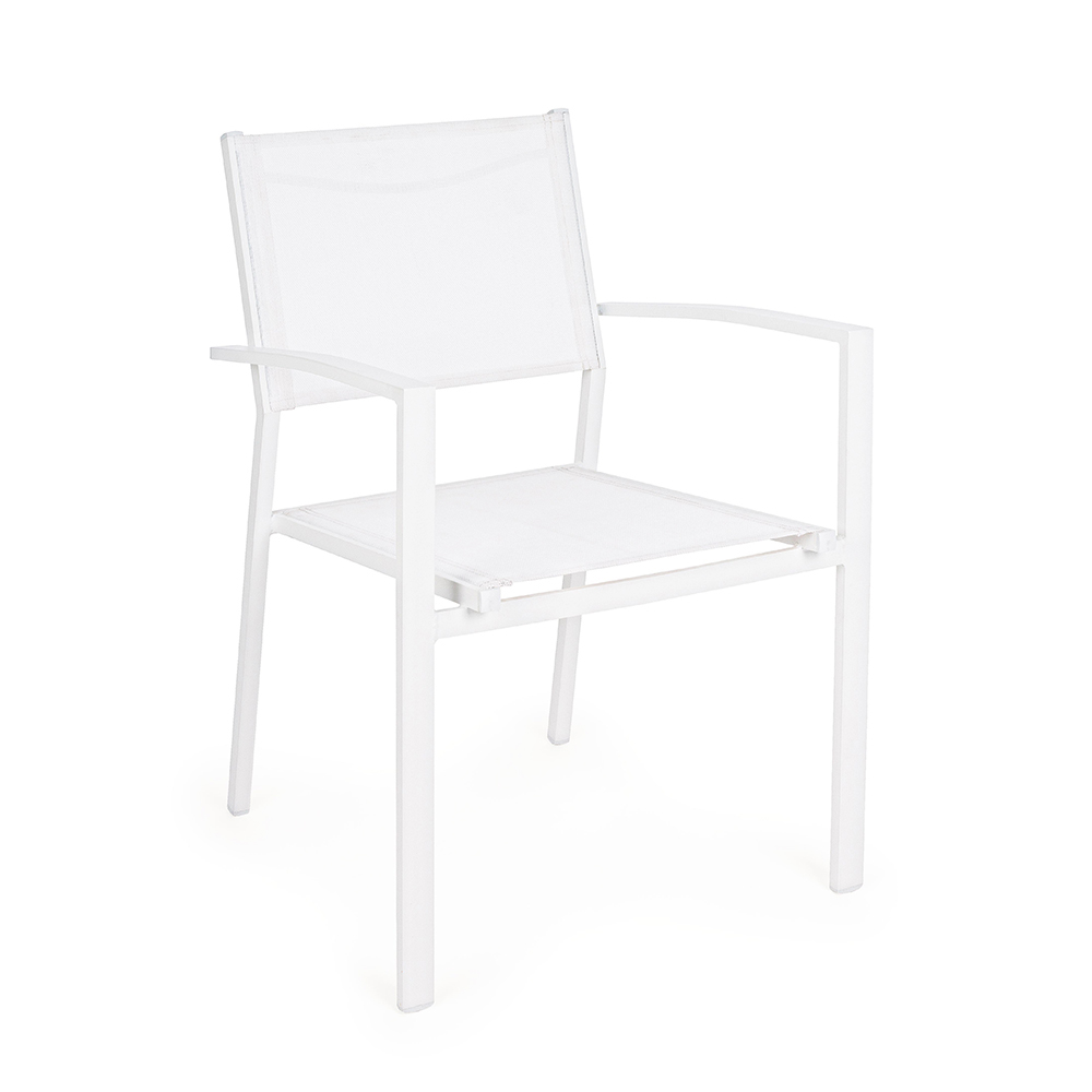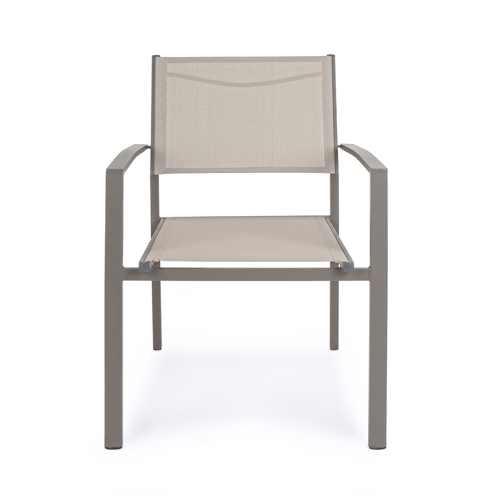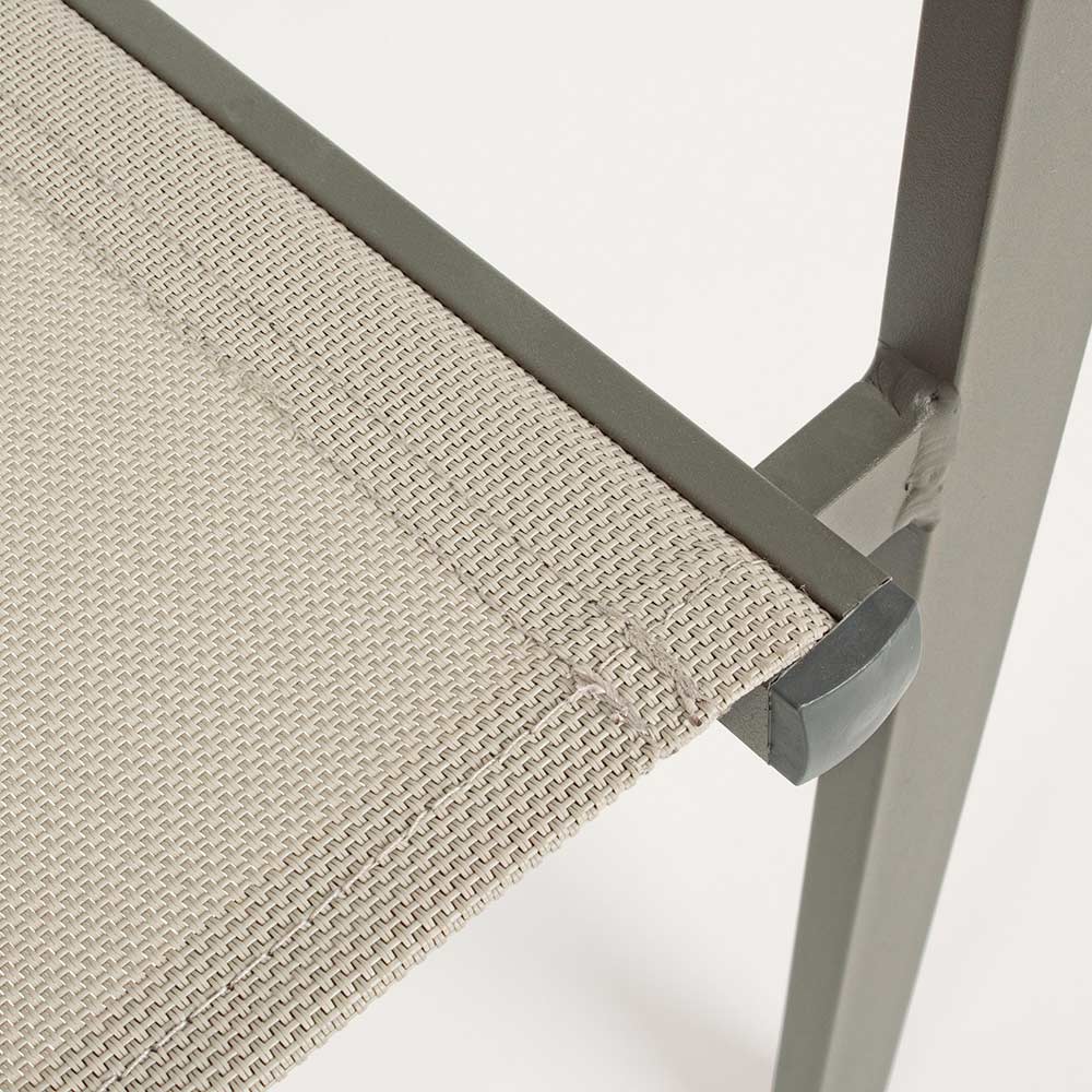 Silla apilable de exterior en aluminio y textilene, diseño moderno.