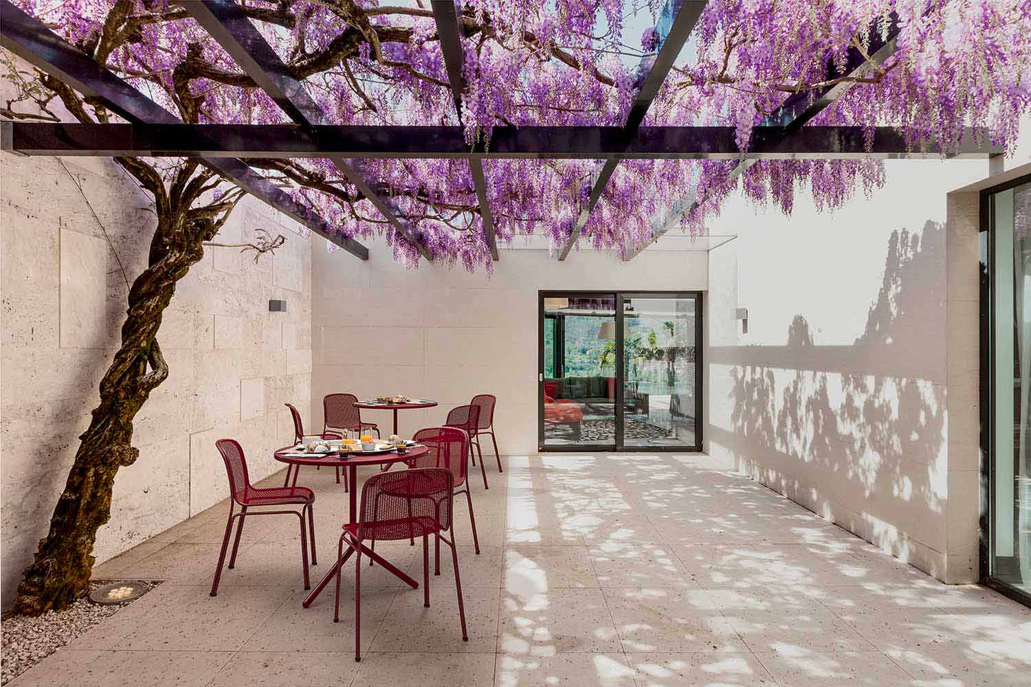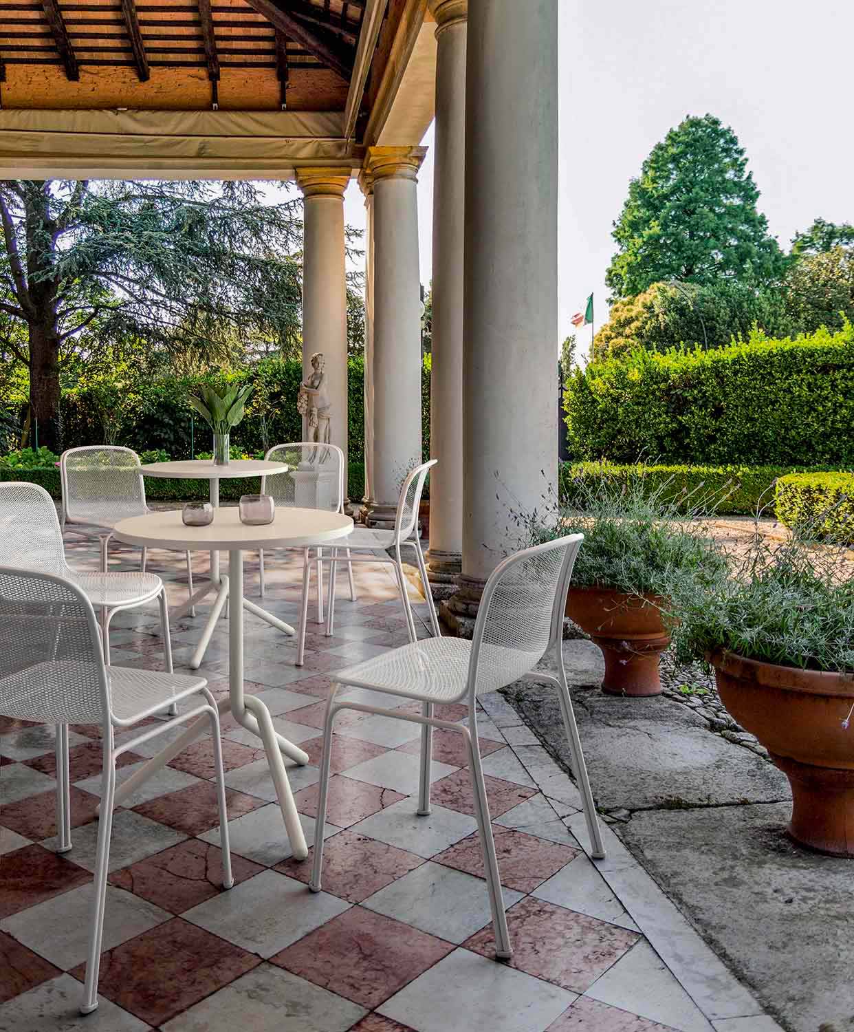 Prunella es una maravillosa silla para exteriores hecha completamente de metal y malla de alambre que combina perfectamente las líneas tradicionales con un diseño contemporáneo que hace que la silla sea ligera pero sólida. También es extremadamente fácil de manejar gracias al cuerpo ligeramente elevado en comparación con las piernas. Disponible en 5 variaciones de colores que le permiten dar personalidad a cualquier entorno.