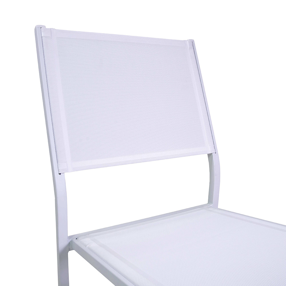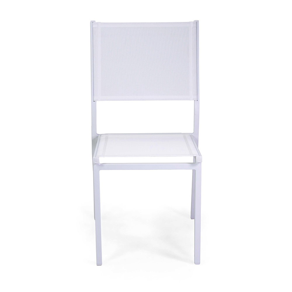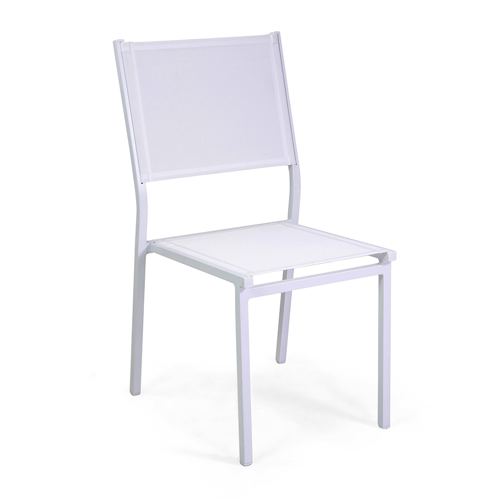 Esta silla con una estructura de aluminio con recubrimiento en polvo blanco representa el equilibrio ideal entre funcionalidad y estilo, perfecta para entornos de exterior como jardines y terrazas. El textileno blanco no sólo le da un aspecto moderno y elegante, sino que también garantiza un asiento cómodo y resistente a la intemperie.