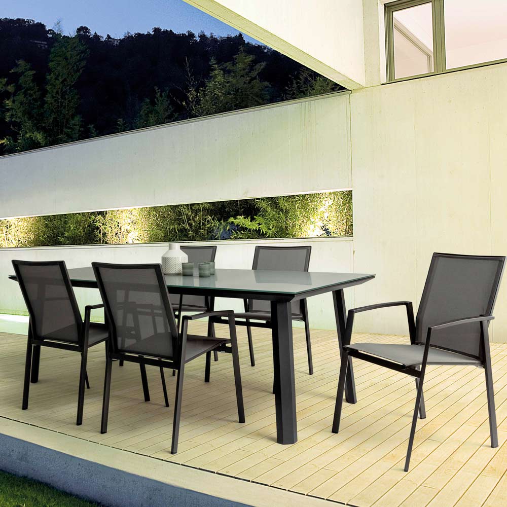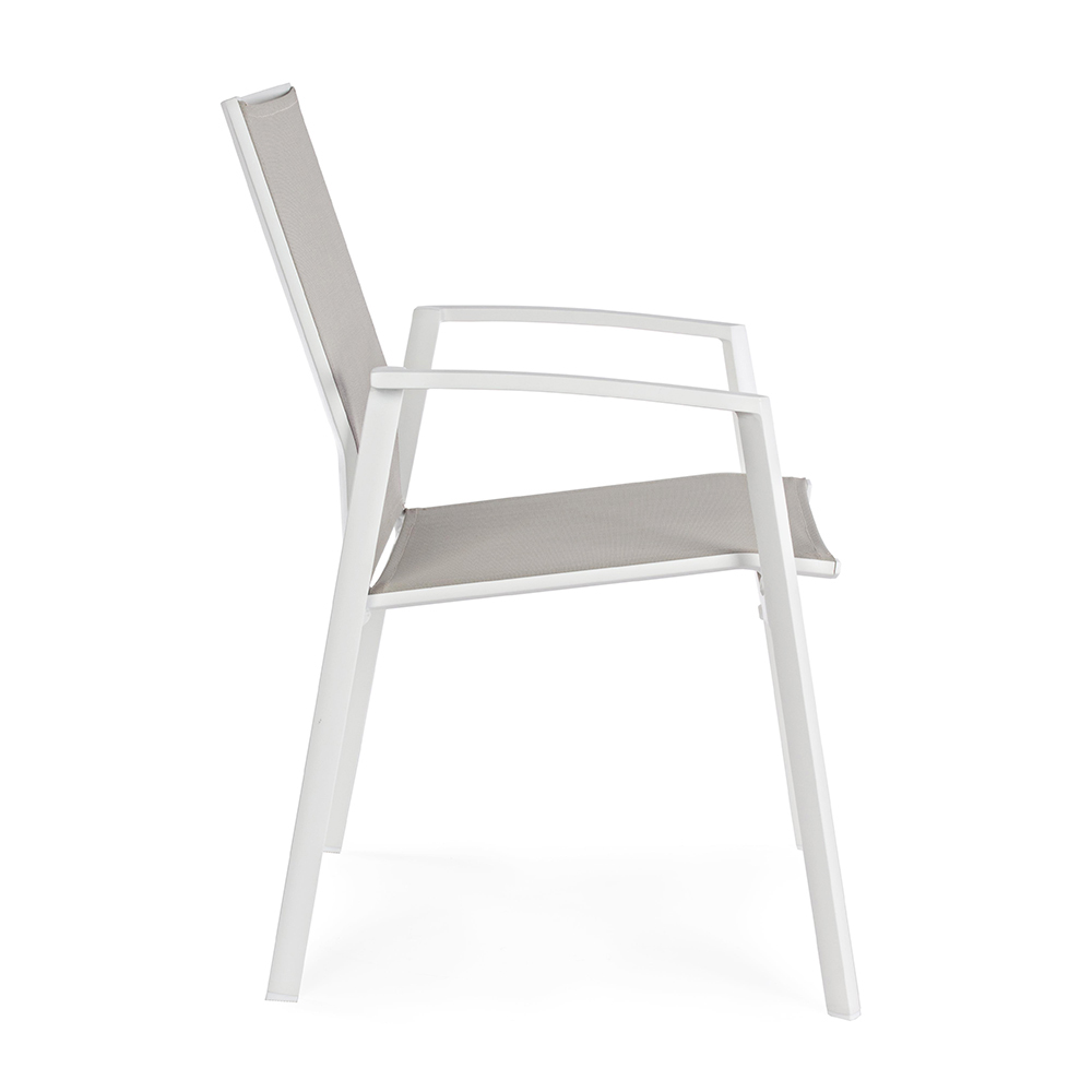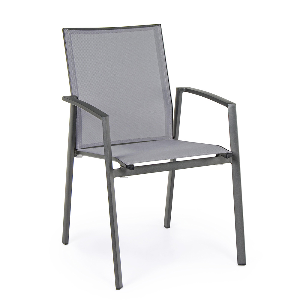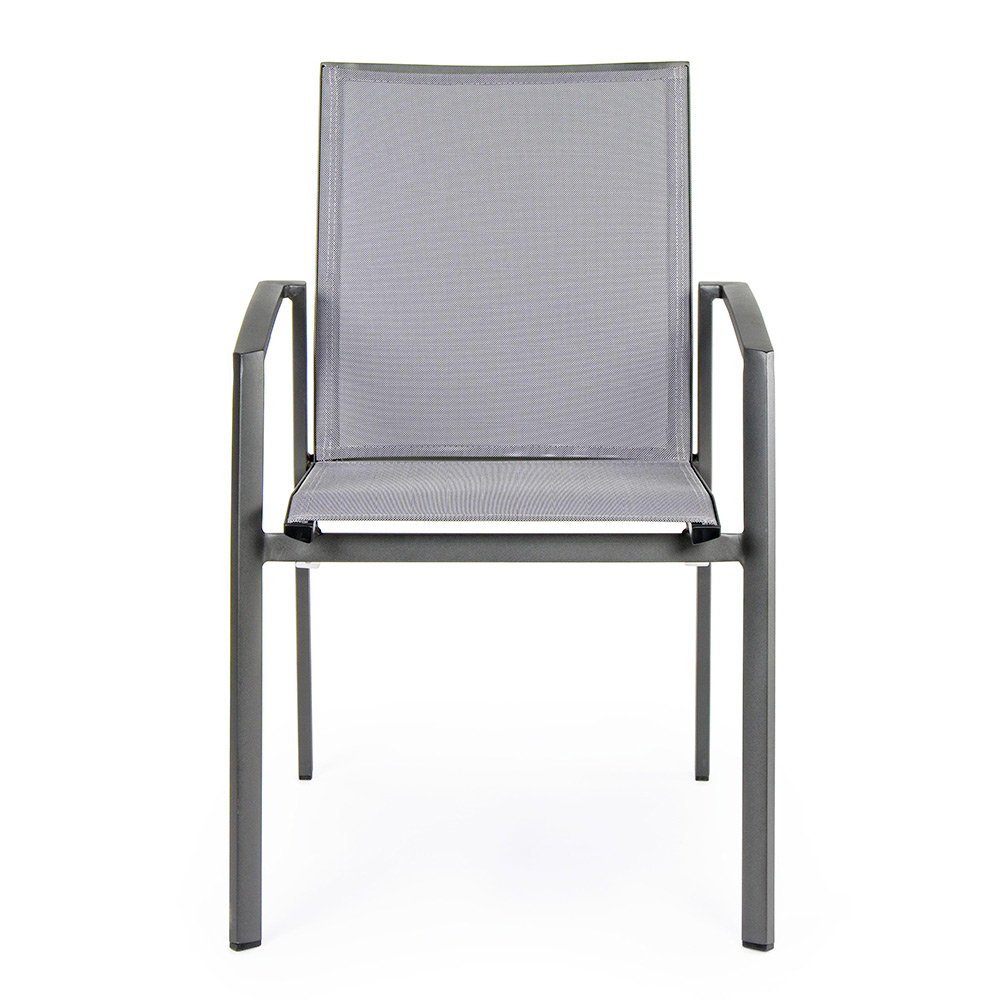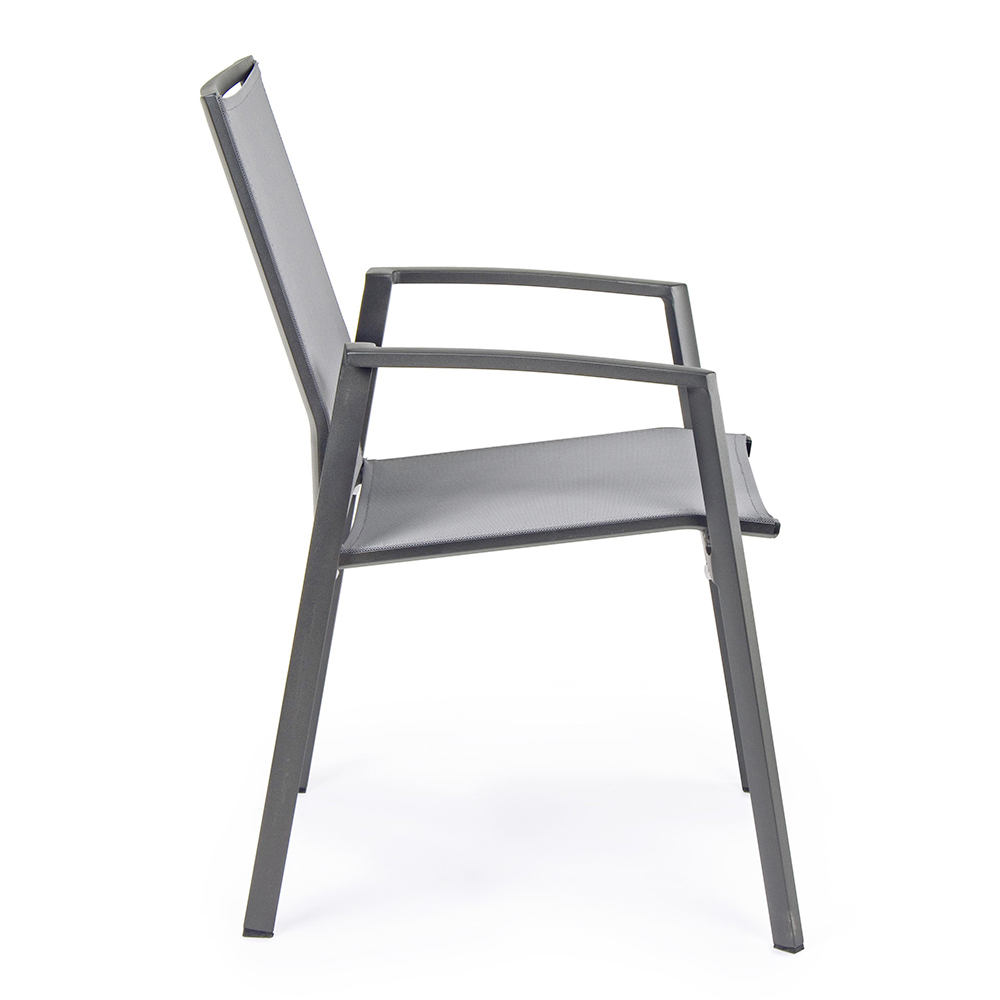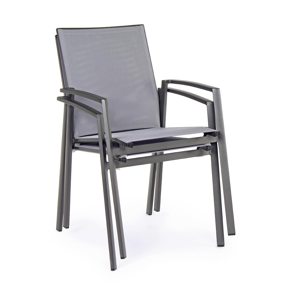 Silla apilable para exterior en aluminio y textilene con reposabrazos, 4 piezas.