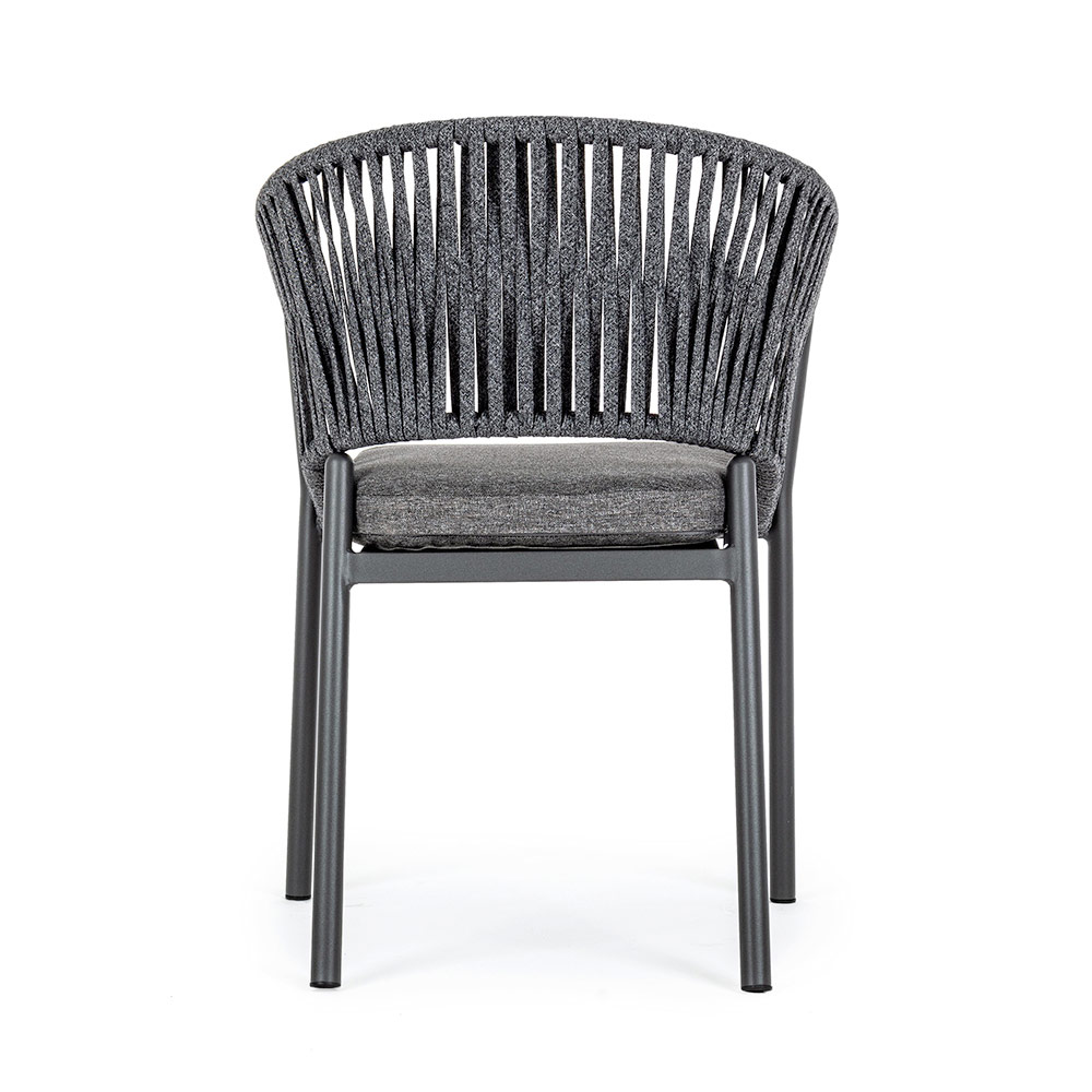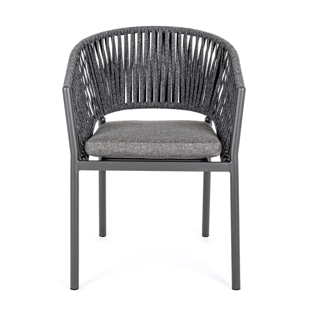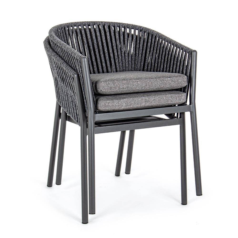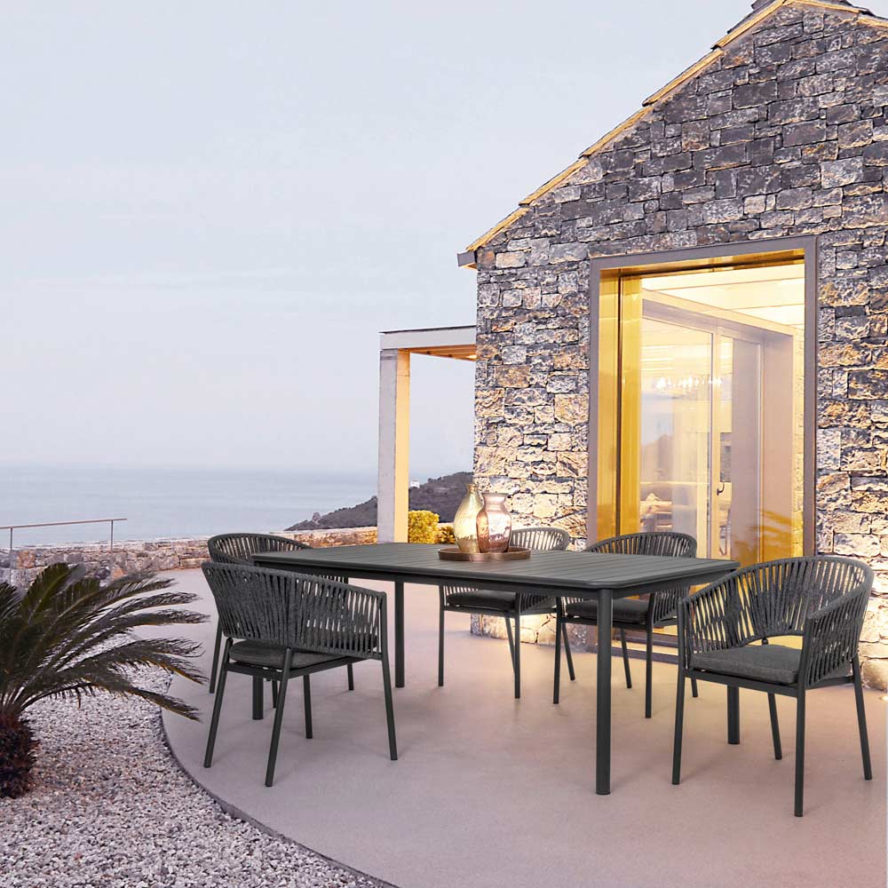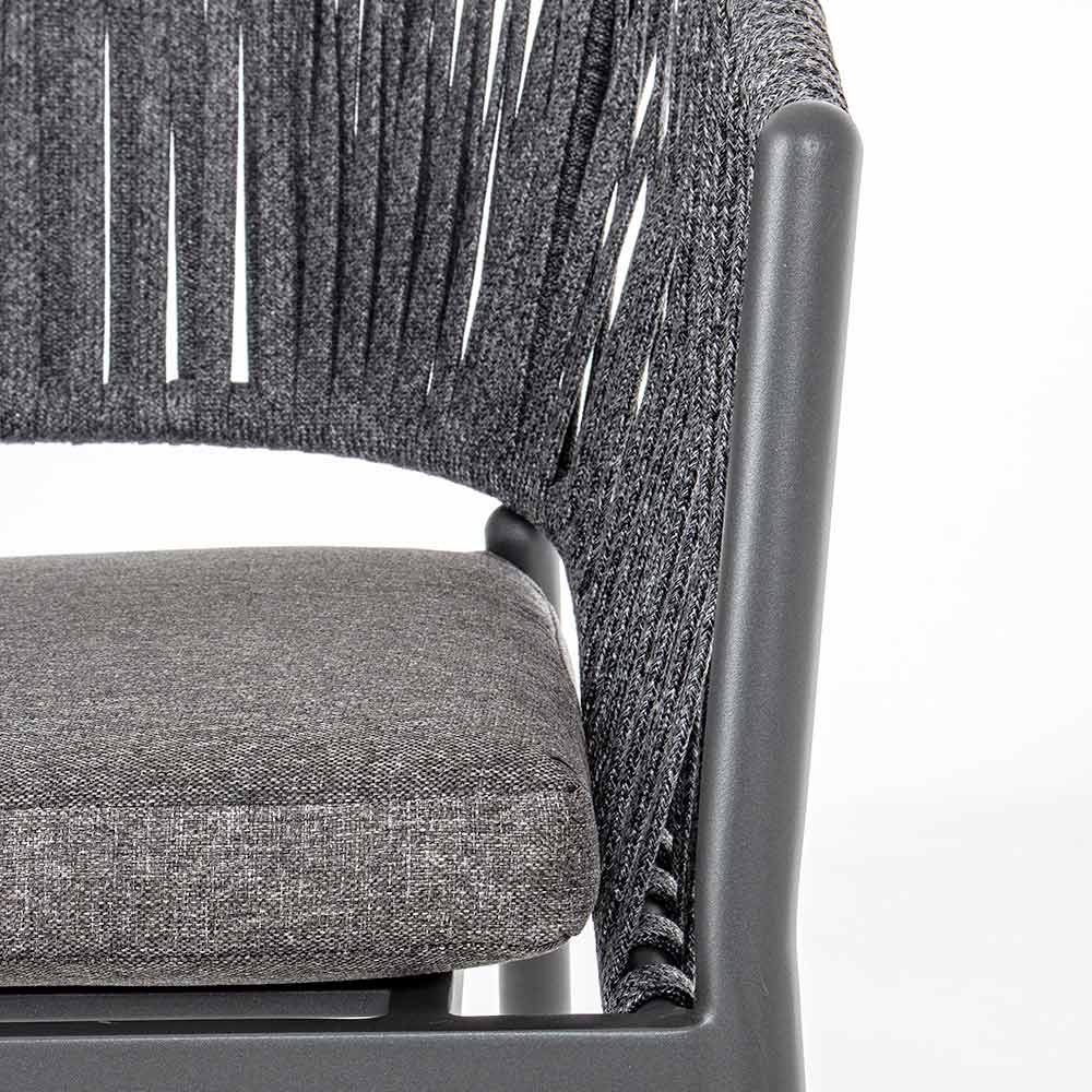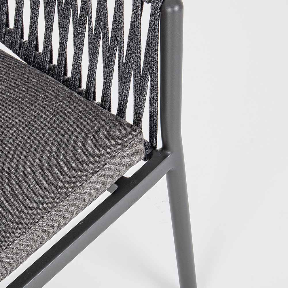Estructura de aluminio pintado en polvo (poliéster). Tejido con cordones de Tetoron (100% poliéster). Cojín de asiento con funda extraíble con tejido de Olefina (100% polipropileno). Apilable. Los muebles de exterior deben pensarse con atención y cuidado. La elección debe recaer en elementos de calidad, que aseguren durabilidad y funcionalidad, pero que al mismo tiempo ofrezcan un confort y un bienestar inigualables , para disfrutar mejor del aire libre. Cuando estos aspectos se combinan con un diseño depurado e innovador, como el que caracteriza a este artículo, se obtiene un resultado único.