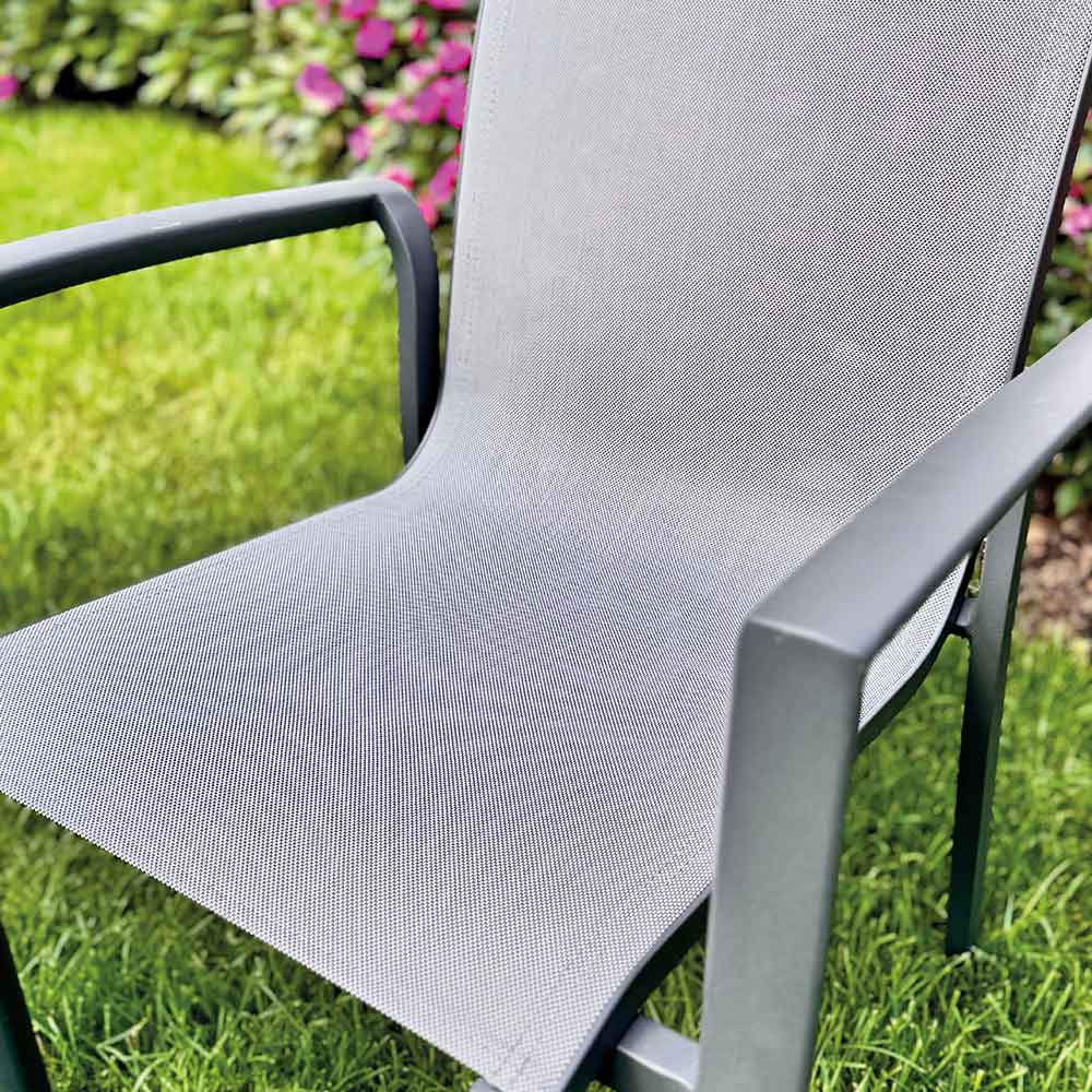 Sillón de jardín realizado con estructura de aluminio pintado antracita y malla de textilene antracita.