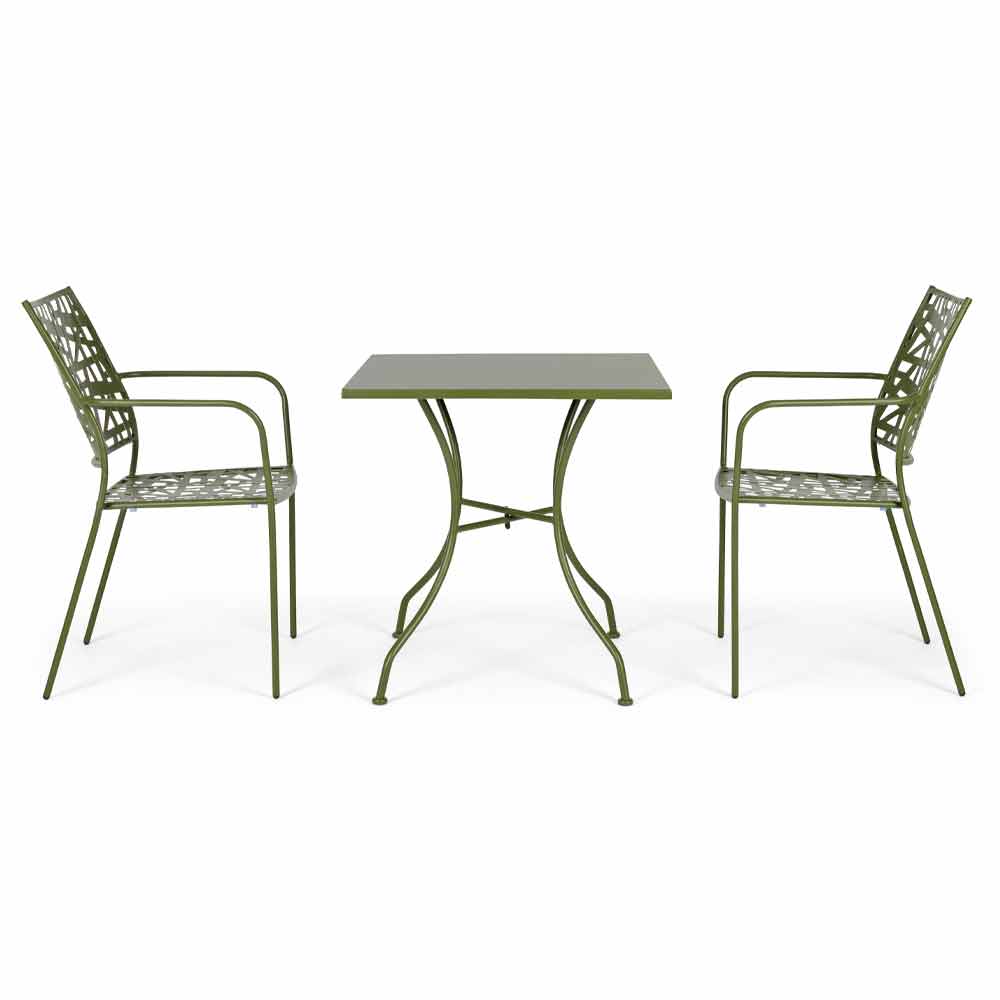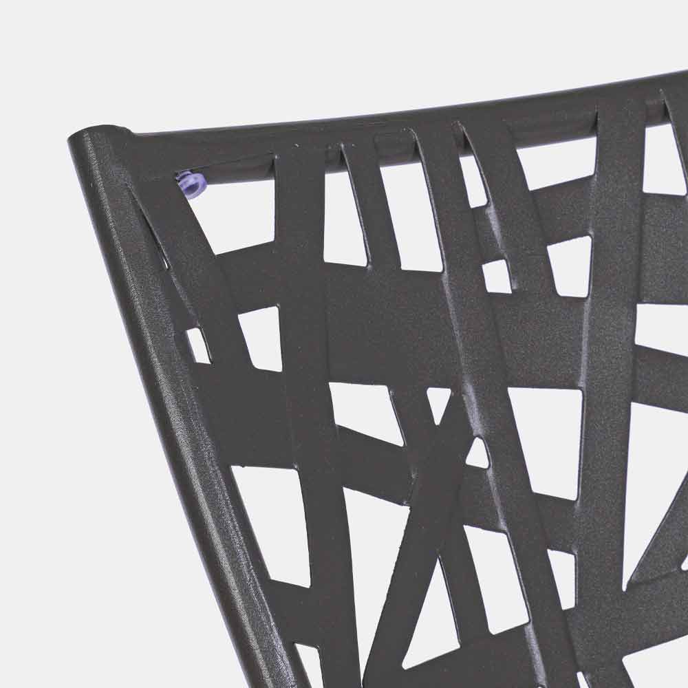 tratado para uso en exteriores (e-coat) y con recubrimiento en polvo (poliéster) con acabado mate. Apilable.