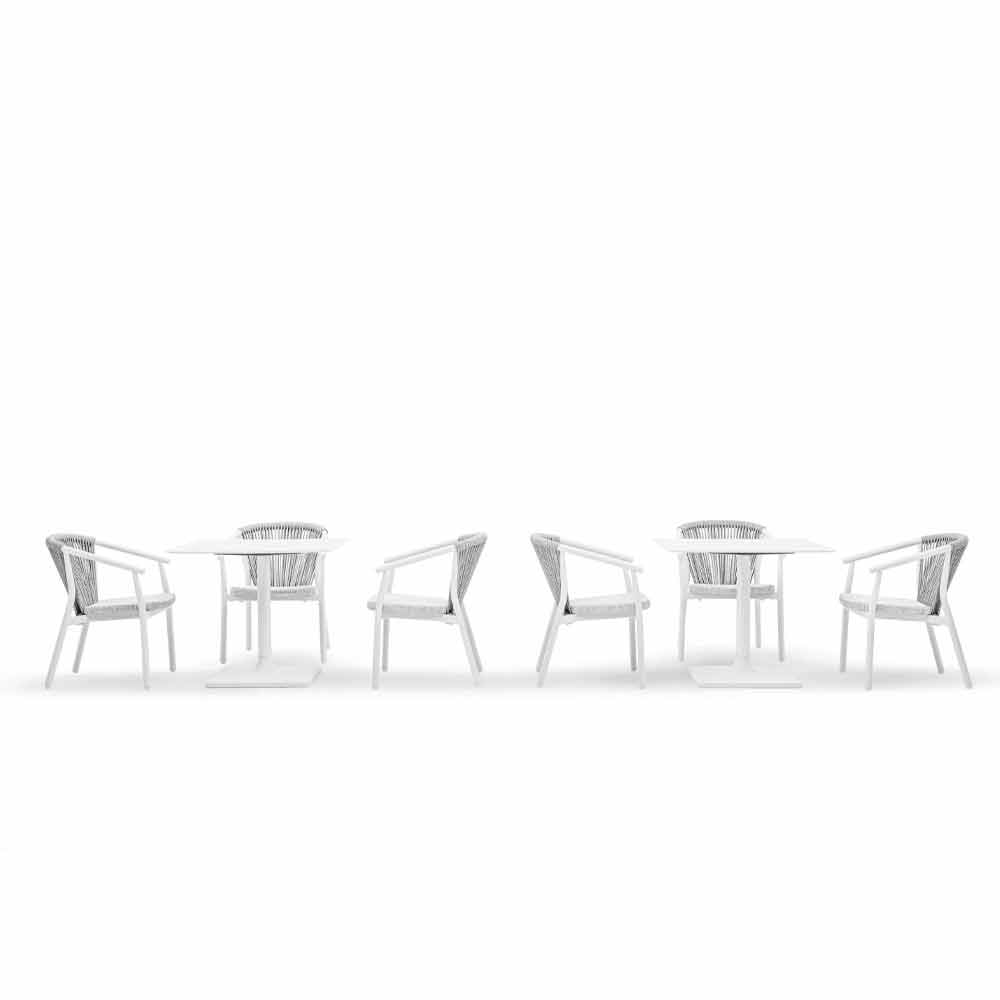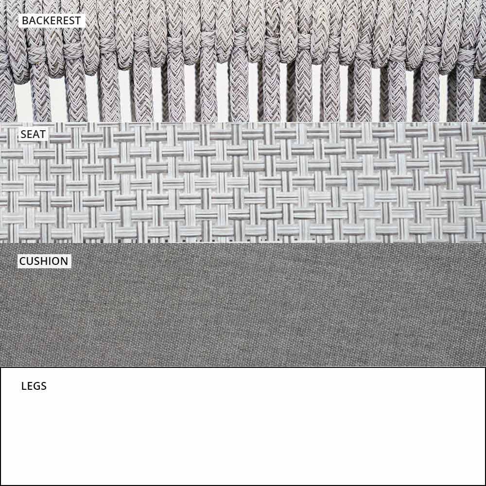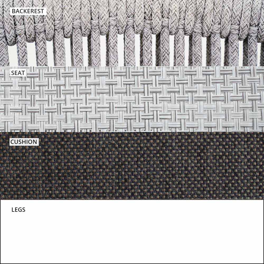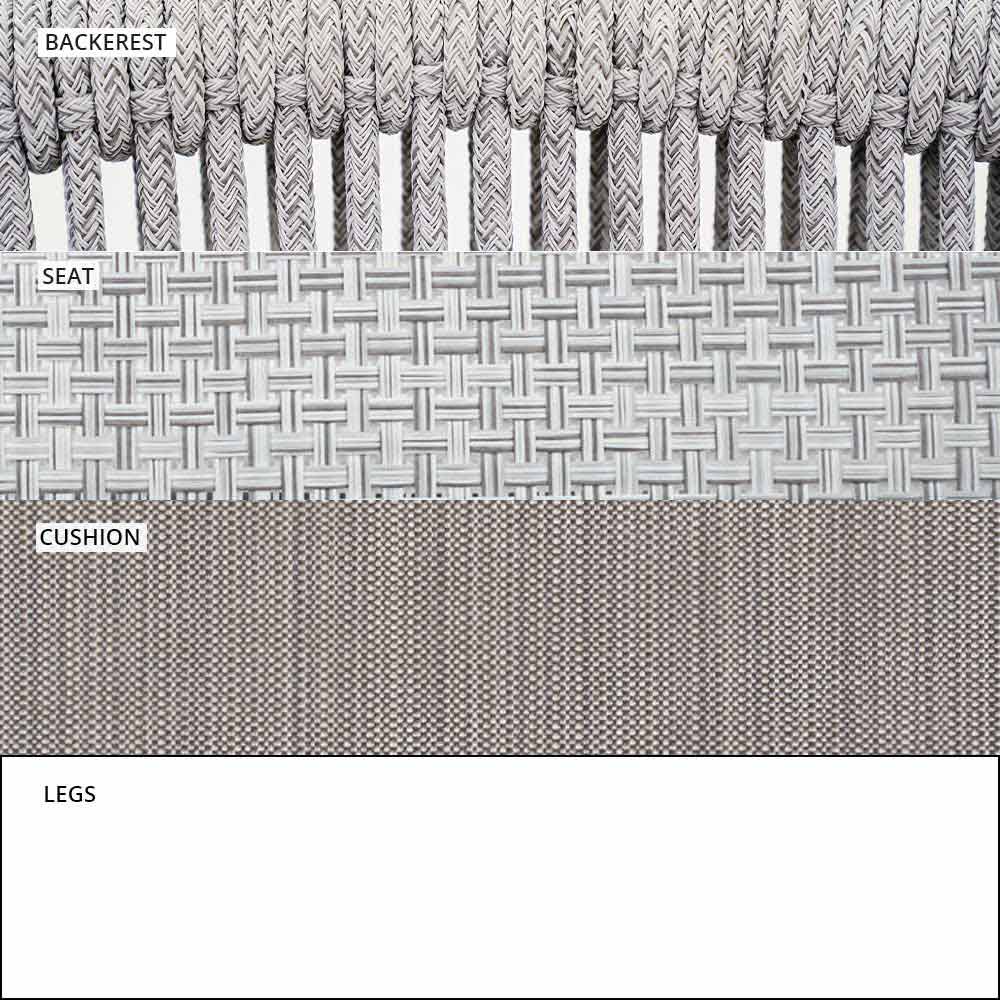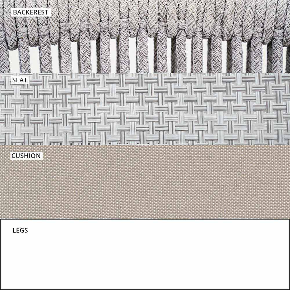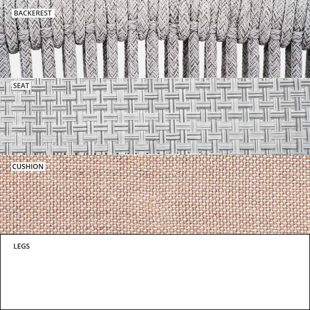 Smart fue hecho con una estructura de aluminio recubierta de polvo blanco, asiento en blanco VAR # TEX tejido técnico y de regreso en VAR # cable de TEX sintético blanco.