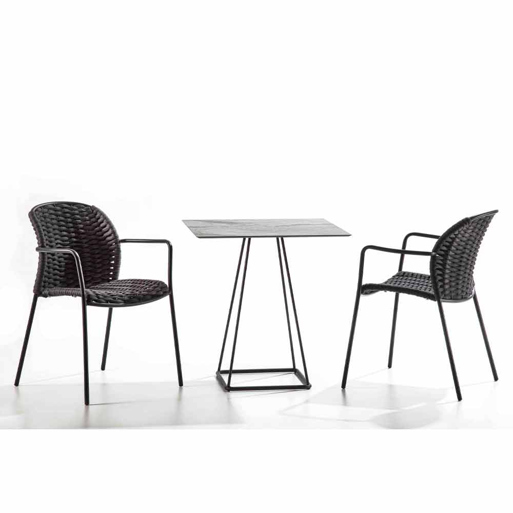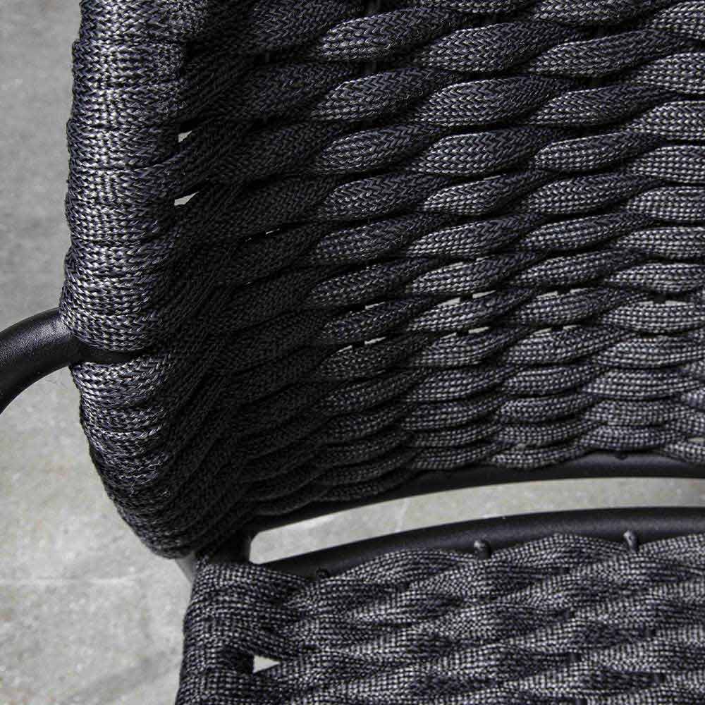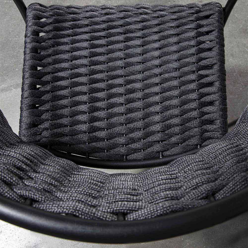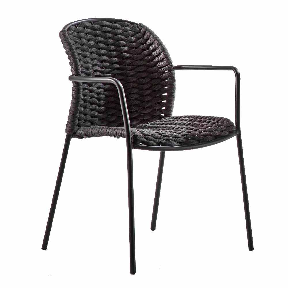 Silla de exterior con estructura apilable en metal galvanizado acabado antracita equipada con apoyabrazos y asiento y respaldo en cuerda de poliéster tejido (interior en goma) acabado antracita. Una solución de decoración que combina un confort óptimo y un lado estético agradable que combina a la perfección con los estilos de decoración más variados. De hecho, su estética le permite completar espacios exteriores creando una perfecta armonía con el resto de elementos presentes o jugando con maravillosos contrastes de estilo para un resultado exclusivo y vanguardista .