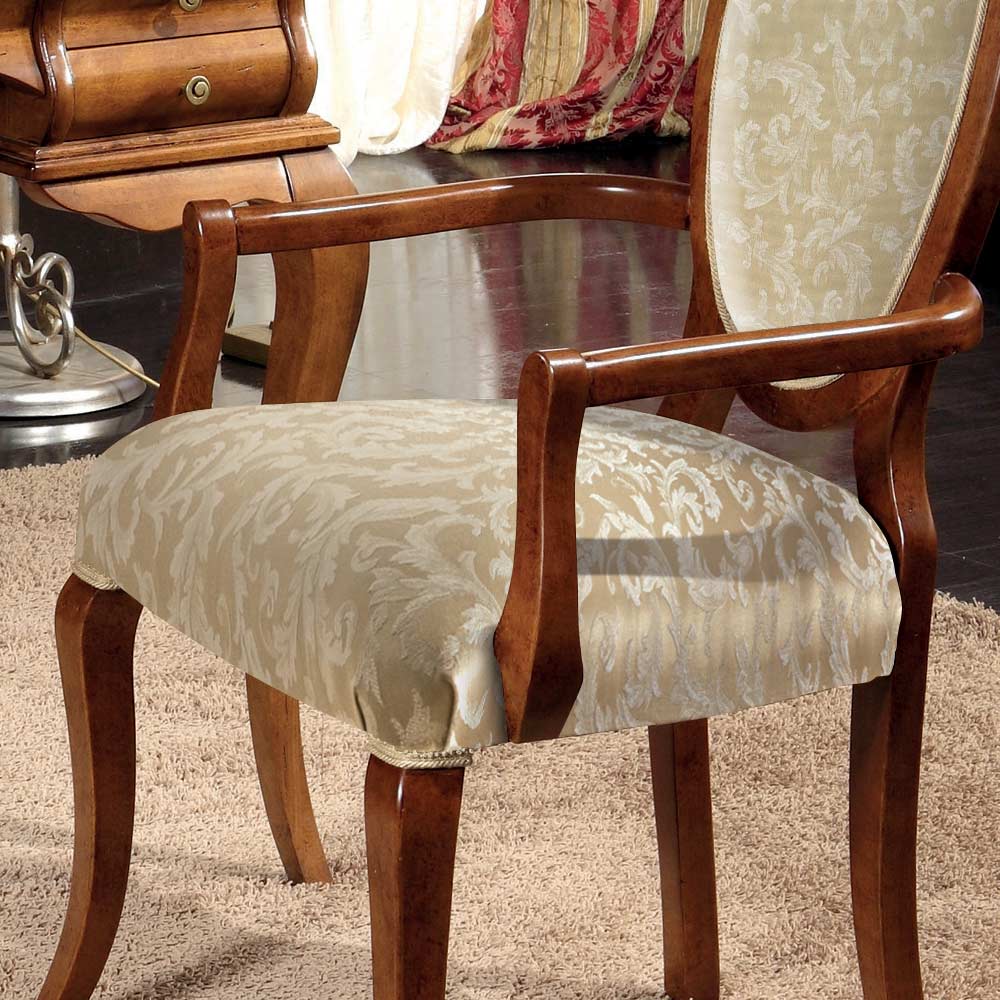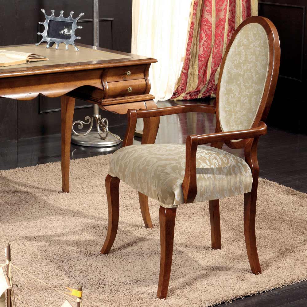 Silla de comedor de estilo clásico fabricada en madera acabado nogal y tapizada en tela disponible en la versión con o sin reposabrazos. Un complemento único y refinado, realizado íntegramente en Italia por expertos maestros artesanos , maestros del arte que terminan cada complemento con sabiduría y gusto por la elegancia. La producción se lleva a cabo utilizando materiales nobles y realizando el trabajoamano con el máximo cuidado y profesionalismo que distingue a los productos Made in Italy .