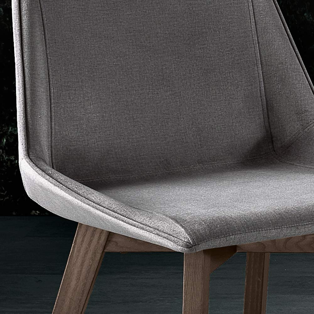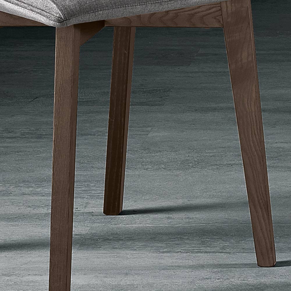 Las patas de madera de fresno aportan calidez y estabilidad, recordando la belleza y robustez de la naturaleza. El diseño de patas inclinadas no sólo ofrece un aspecto moderno sino que también garantiza una estructura sólida y duradera . El color gris de la tela y el fresno cocido de las patas se unen en un abrazo de estilo que puede complementar cualquier tipo de mesa y decoración interior.