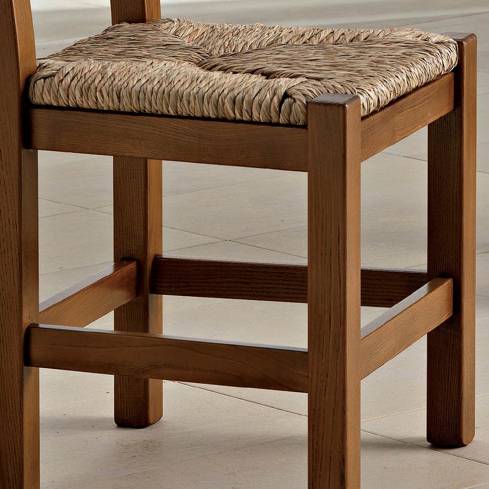 Silla de cocina de diseño clásico en madera y paja, fabricada en Italia.