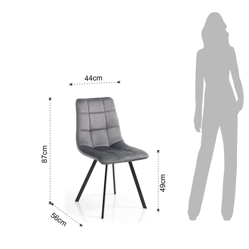 Silla de cocina con patas fabricada en metal pintado negro mate y asiento tapizado en suave tejido de microfibra con efecto terciopelo . Un diseño refinado y contemporáneo caracteriza a este mueble de alma refinada, ideal para completar el estilo de su sala de estar de una manera exclusiva, enriqueciéndola con un toque de personalidad y elegancia .