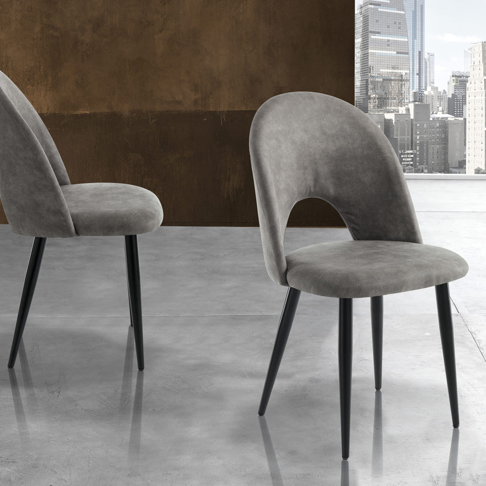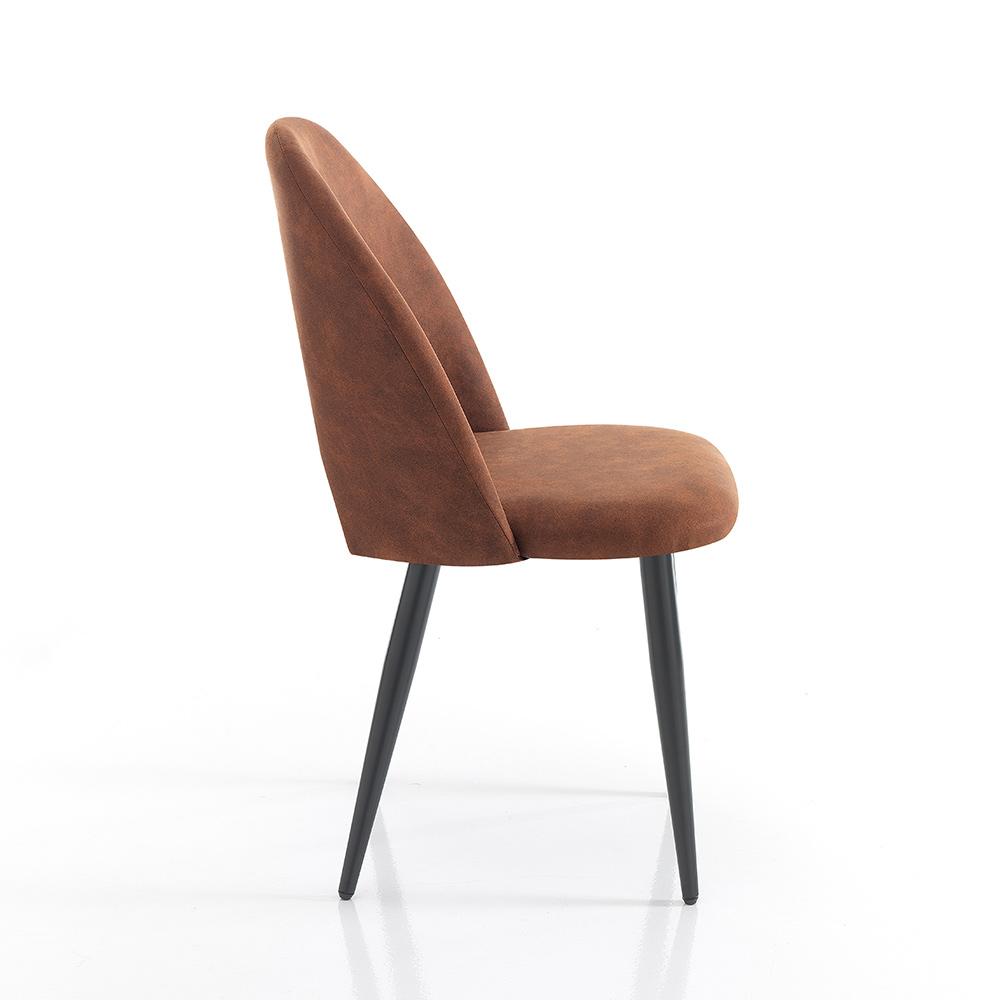 Silla de cocina con asiento acolchado tapizado en polipiel efecto envejecido eestructura realizada en metal pintado negro mate . Un diseño imprescindible pero de fuerte impacto visual gracias al maravilloso efecto que crea el revestimiento que le da al producto toda su personalidad elegante y refinada . La combinación perfecta con el acabado mate de las patas da vida a una silla única, perfecta para completar cualquier situación de decoración en espacios domésticos como cocinas o comedores pero también en espacios contract como bares y restaurantes.