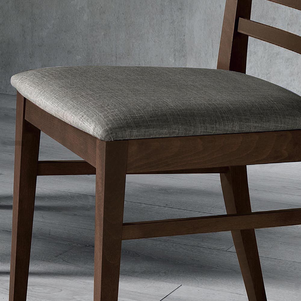 La silla de cocina está fabricada en Italia con estructura de madera maciza de haya disponible en varios acabados y asiento de tela. Gracias al diseño cómodo y armonioso, se adapta a diferentes ambientes para una elegancia esencial con una ligereza visual y un estado de ánimo extremadamente versátil.