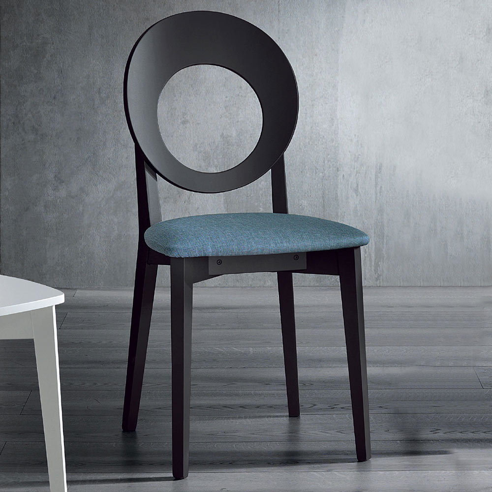 La silla de cocina está realizada con una estructura de madera maciza de haya disponible en varios acabados con asiento de tela. La estructura moderna y cómoda da vida a un diseño armonioso que se caracteriza por el respaldo circular , dando ligereza visual creando un estado de ánimo extremadamente versátil. La silla se adapta así a diferentes ambientes, con una elegancia esencial.