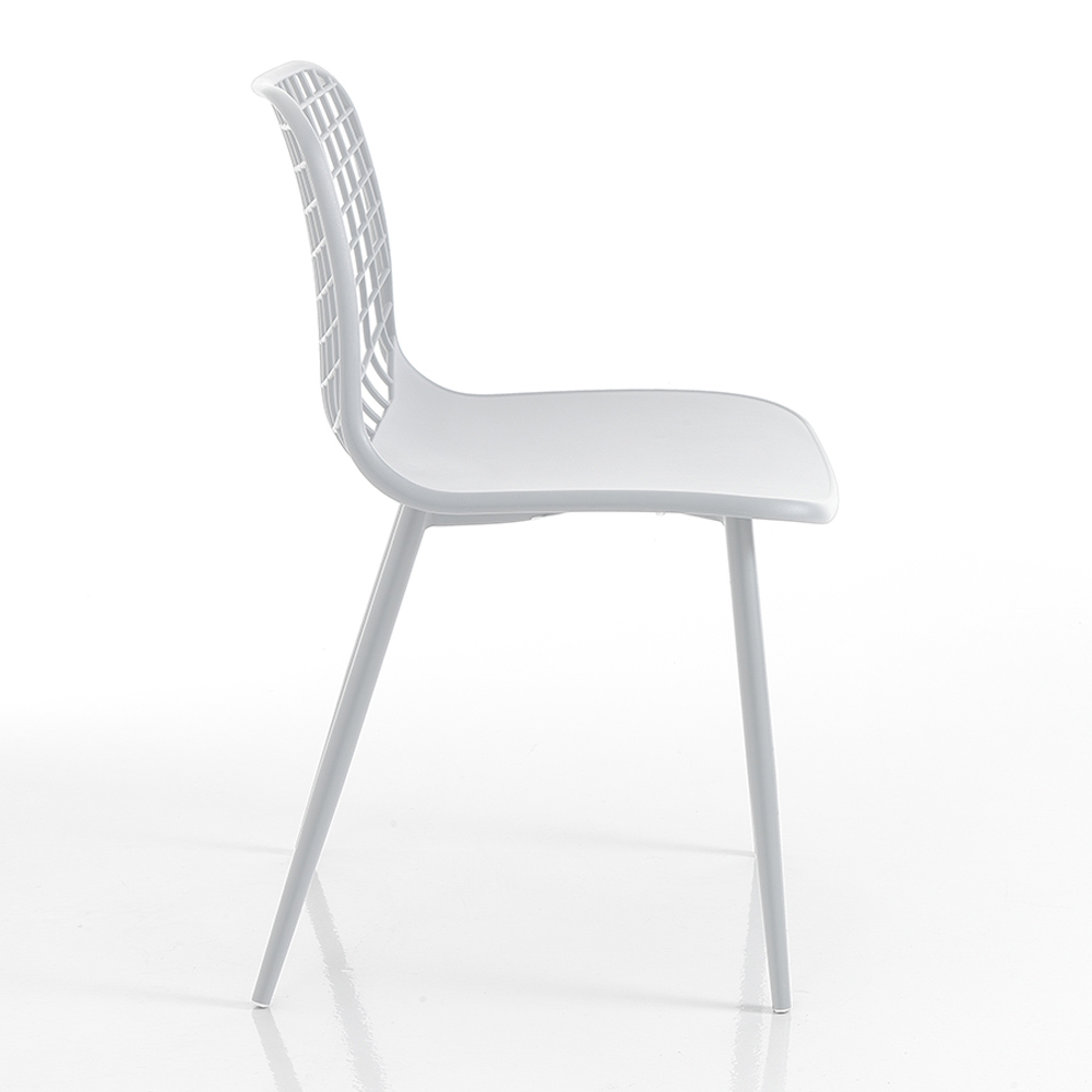 Silla de cocina en polipropileno blanco y acero pintado, 4 piezas.