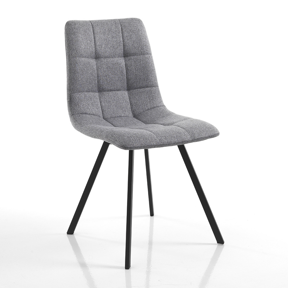 Silla de Cocina en Tela Gris y Acero Negro Mate 4 Piezas - Ventura