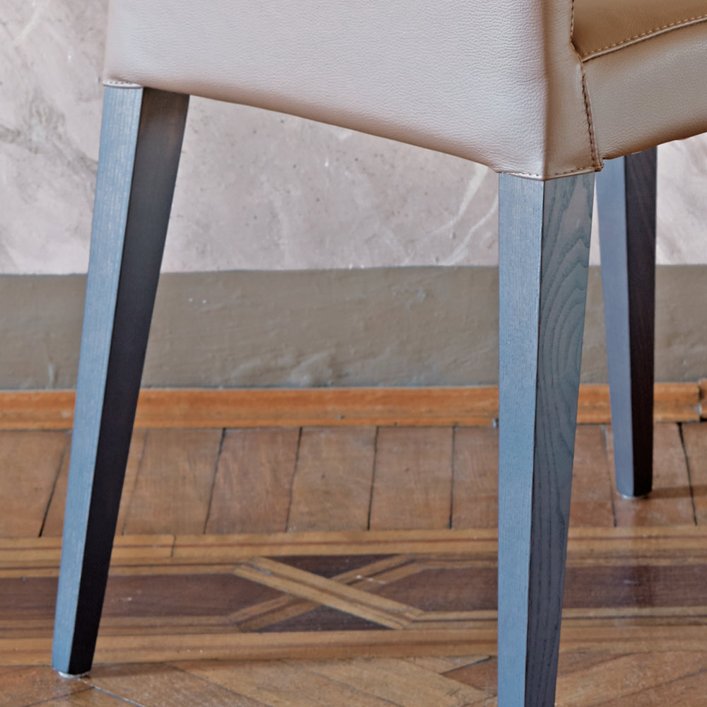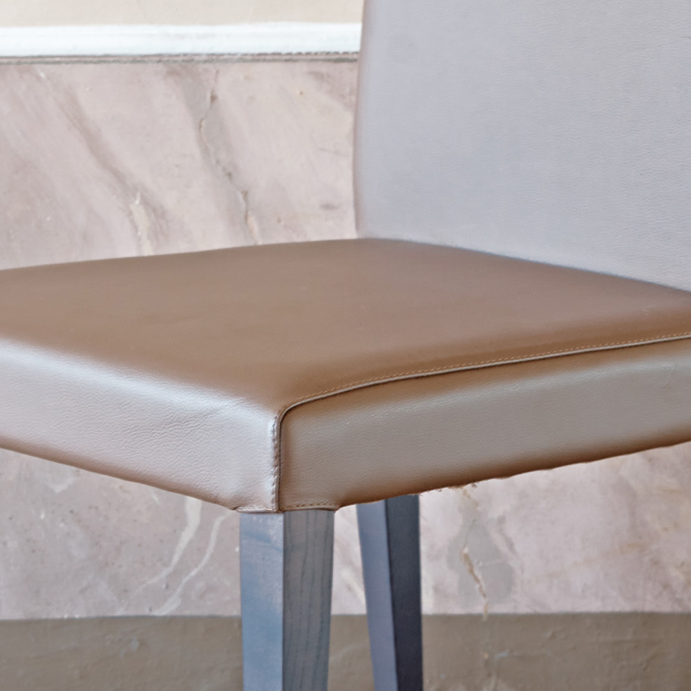 Silla de comedor fabricada íntegramente en Italia , con asiento tapizado en piel acabado arena y estructura de fresno teñido gris . Gracias a sus acabados sencillos y suaves, es una idea perfecta para todos aquellos que aman amueblar sus salones, comedores y cocinas con gusto y estilo sin renunciar a la funcionalidad y el confort.
