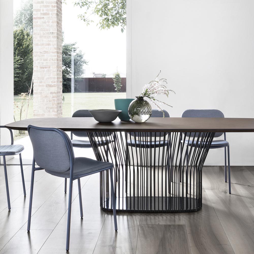 El suave acolchado completa el resultado final ofreciendo un asiento acogedor y confortable, ideal para regalarse preciosos momentos de relax durante comidas y cenas en cocinas o comedores de estilo moderno. La posibilidad de apilar también enfatiza su lado funcional y la convierte en una solución perfecta también para entornos contract como bares y restaurantes donde es fundamental poder optimizar los espacios cuando las sillas no están en uso.