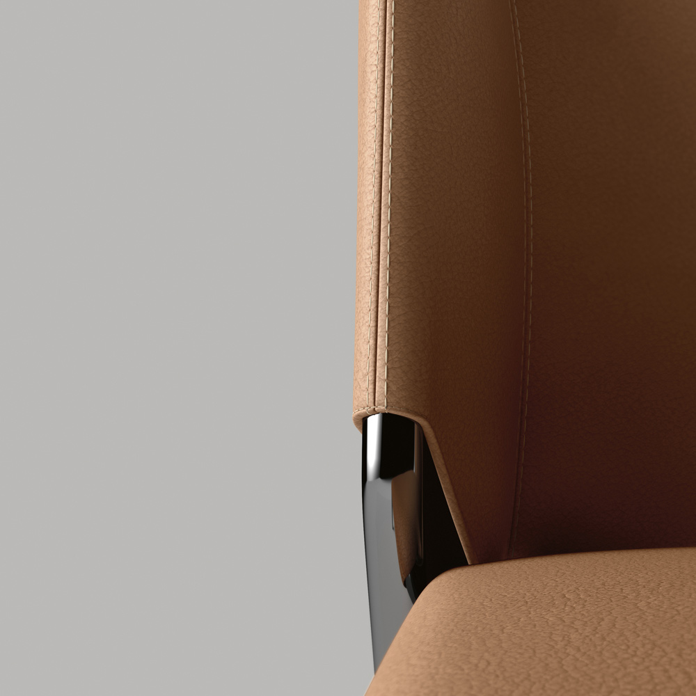 Silla de comedor con estructura de varilla de metal curvada de 20 mmy asiento y respaldo tapizados en cuero, íntegramente fabricado en Italia . Caracterizada por un estilo contemporáneo , esta silla demuestra ser el resultado perfecto del encuentro entre innovación tecnológica y artesanía . El acolchado finamente trabajado con costuras externas cumple una función tanto técnica como estética, subrayando la elegancia del producto y la especial atención a los detalles utilizados para su realización. Gracias al diseño atemporal y la comodidad del asiento, es ideal dentro del contexto doméstico pero también en el sector contract, demostrando ser especialmente versátil y ofreciendo un espacio cómodo y acogedor en el que dejarse envolver para disfrutar plenamente de los momentos. dedicado a la relajación.