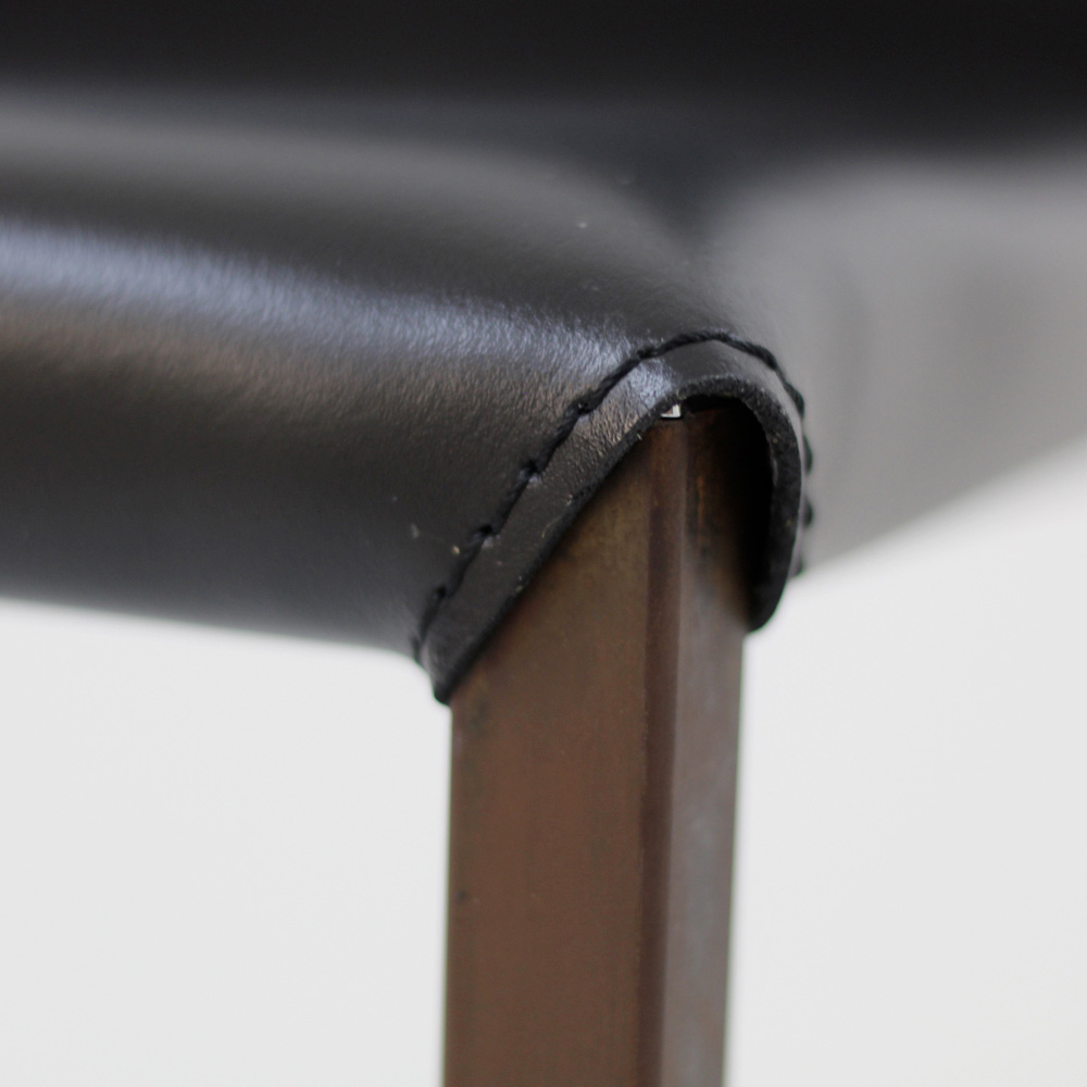 fabricada en Italia con estructura Corten y asiento de cuero negro perfecta para el hogar y apta para contract. Este conjunto de mobiliario es una idea perfecta para todos aquellos que quieran dar a la estancia un toque especial y moderno, sin renunciar a la