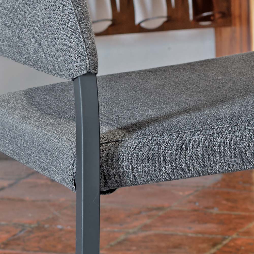 Silla de comedor fabricada íntegramente en Italia , con estructura lacada antracita mate , con pata cuadrada de 20x20 mm, asiento y respaldo revestidos en tejido hidrófugo antibacteriano gris . Apilable y extraíble de serie, también disponible con respaldo bajo (H 85 cm) Silla de diseño moderno, con acabados sencillos y lineales, pero a la vez capaz de amueblar tus salones, comedores y cocinas con gusto y estilo sin renunciar a la funcionalidad y el confort.