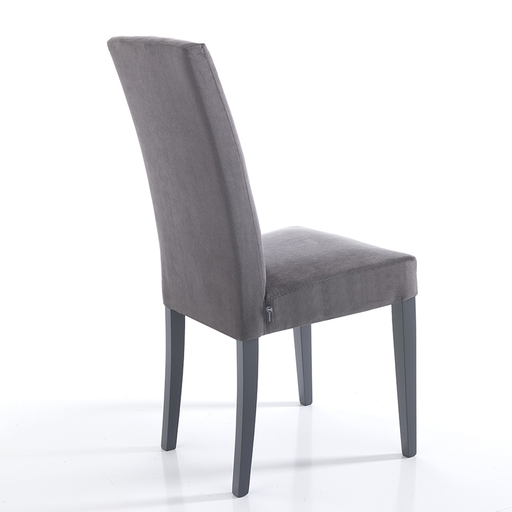 Silla para comedor o cocina fabricada en Italia con estructura en madera lacada en el mismo color y asiento y respaldo tapizados en microfibra efecto terciopelo . Elementos de decoración perfectos para estancias de estilo contemporáneo que necesitan un toque de elegancia y modernidad sin apartar la vista de la mesa del comedor, centro neurálgico de la estancia, pero creando junto a ella una armonía de estilos única capaz de dar resultado. de fuerte impacto visual y refinada personalidad .