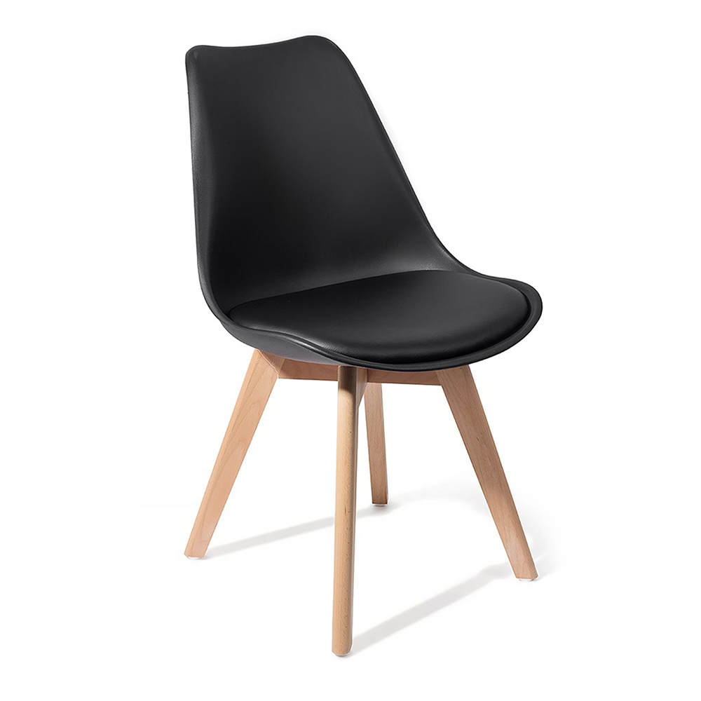 Silla de comedor en polipiel, polipropileno y madera maciza, 4 piezas.