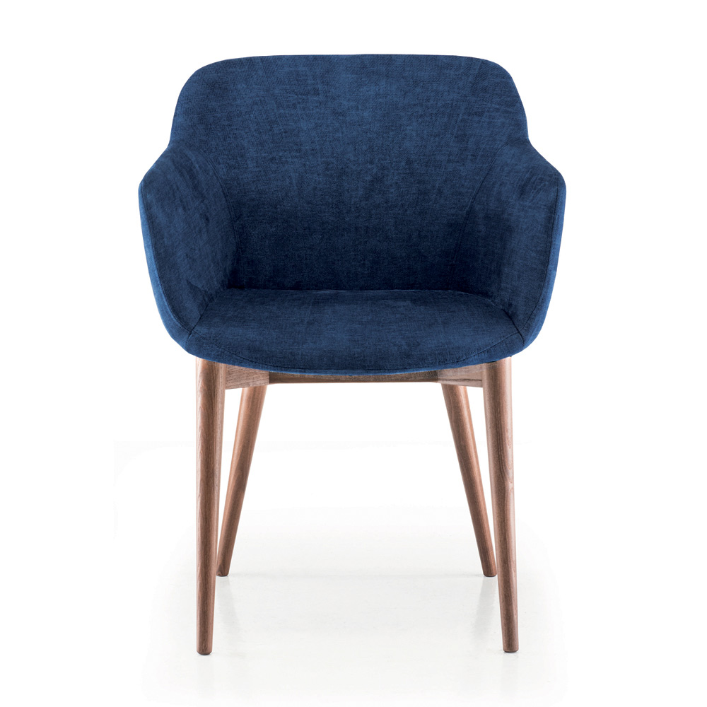 Silla de comedor de tela con patas de madera Made in Italy, 4 piezas.