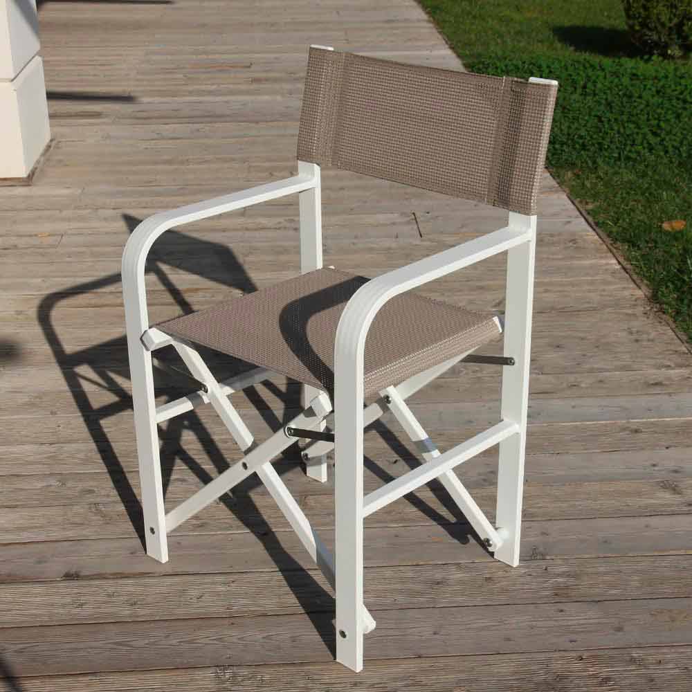 Silla de exterior con estructura en aluminio pintado en polvo y asiento en hilo continuo de poliéster recubierto de pvc, made in Italy . Una solución de mobiliario para ambientes exteriores ideal para los amantes de la practicidad y la funcionalidad, elementos que le confieren el asiento cómodo y acogedor y la estructura abatible que permite cerrar fácilmente la silla por un tamaño mínimo . Gracias a su diseño moderno y esencial se adapta perfectamente a los más variados contextos, trayendo consigo toda su personalidad sobria y ecléctica . Los diversos acabados disponibles también le confieren un carácter especialmente versátil, consiguiendo satisfacer de la mejor forma posible cualquier petición y necesidad. Los materiales de alta calidad utilizados junto con la mano de obra 100% Made in Italy dan vida a un asiento ligero y extremadamente robusto, ideal para muebles de exterior de bares, jardines, pero también playas y piscinas.