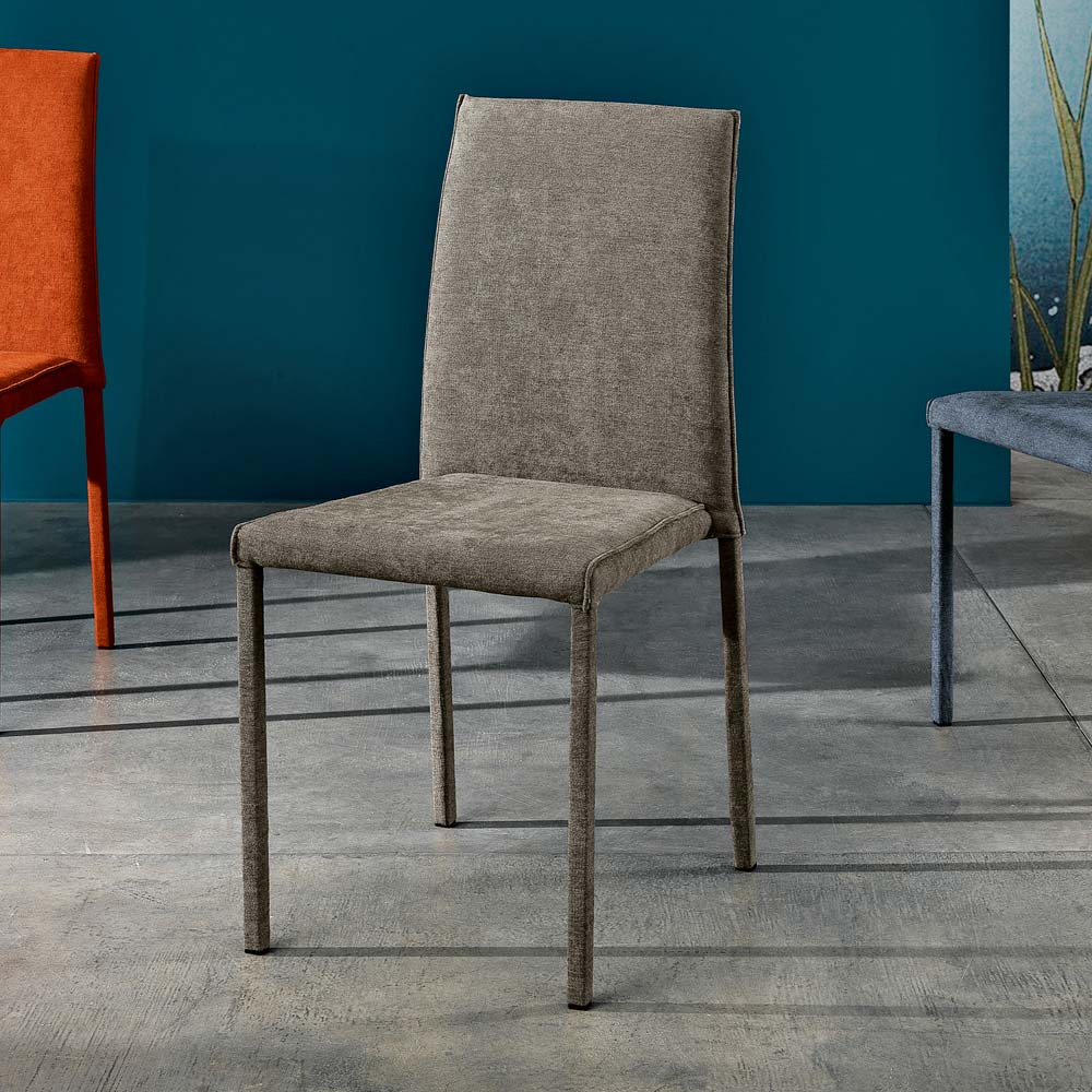 Conny es una increíble silla apilable para comedor , completamente cubierta de tela y realizada a mano en Italia.