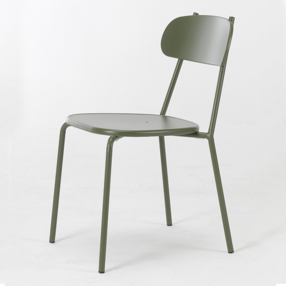 Silla apilable para exterior en hierro galvanizado pintado y galvanizado. Fabricada en Italia. 4 piezas.