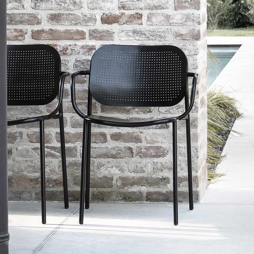 Silla de jardín en metal pintado con reposabrazos Made in Italy, 2 piezas.