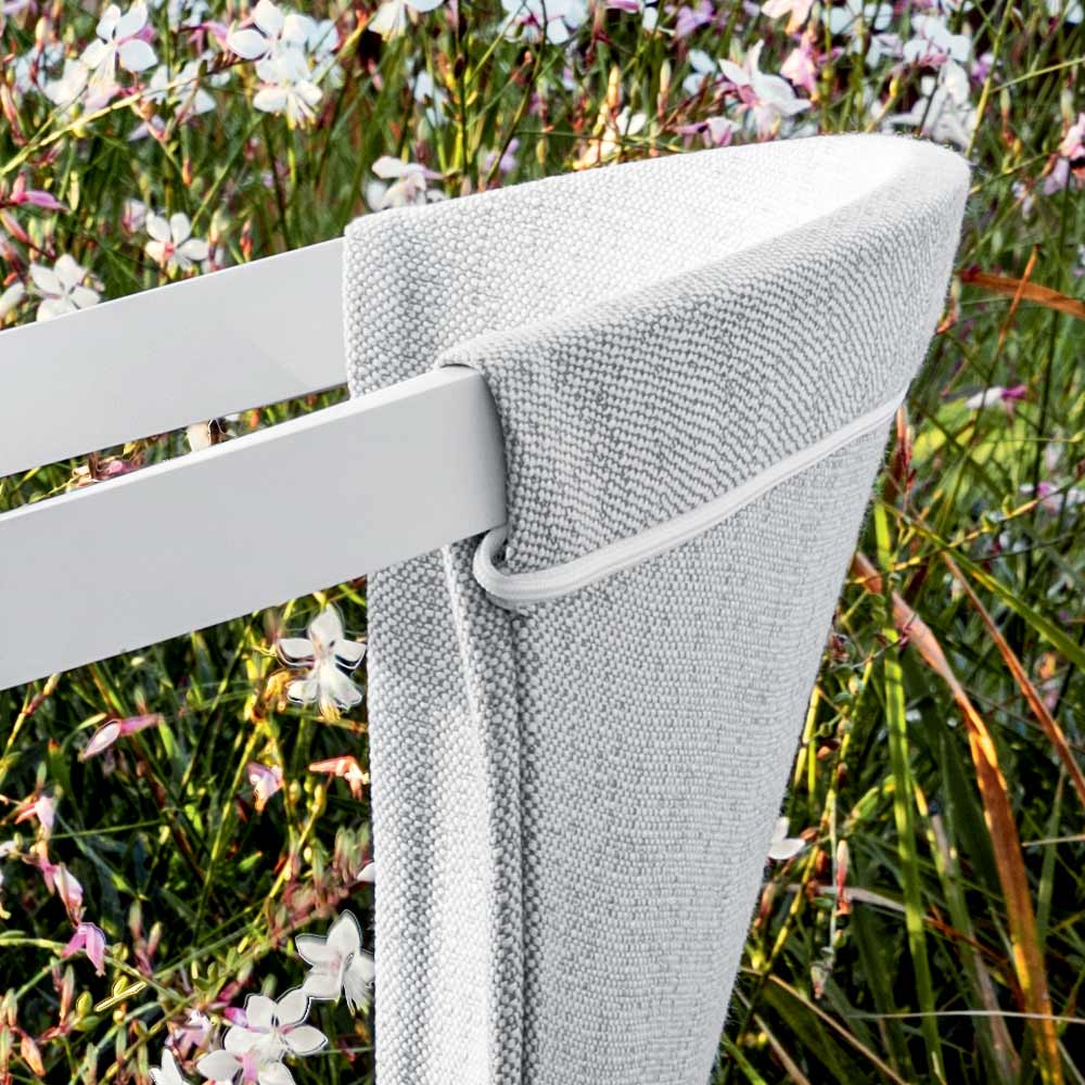 También se puede adquirir con el cojín desenfundable en tejido hidrófugo combinado con el respaldo. El acolchado es de espuma de poliuretano envuelto en una membrana impermeable pero transpirable.